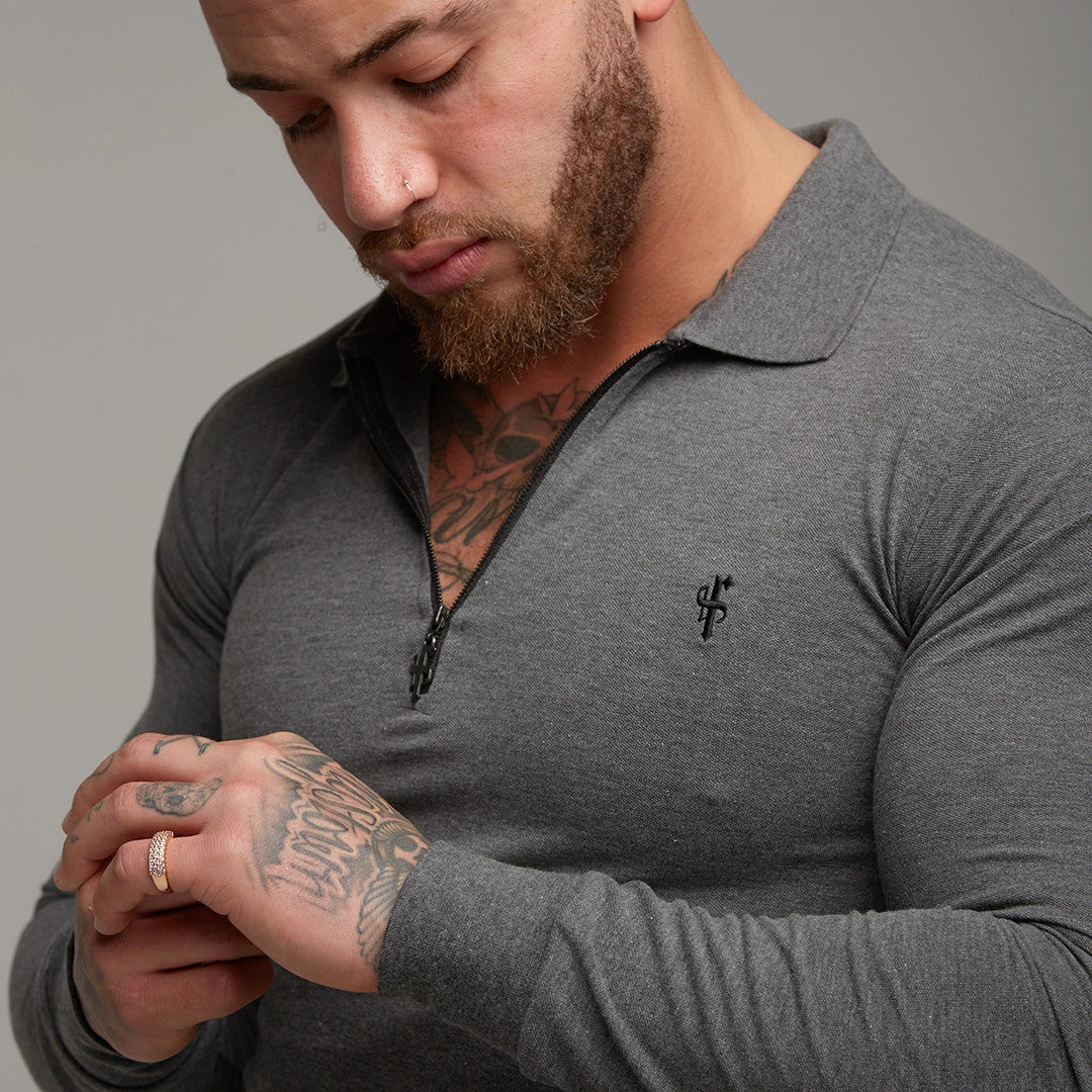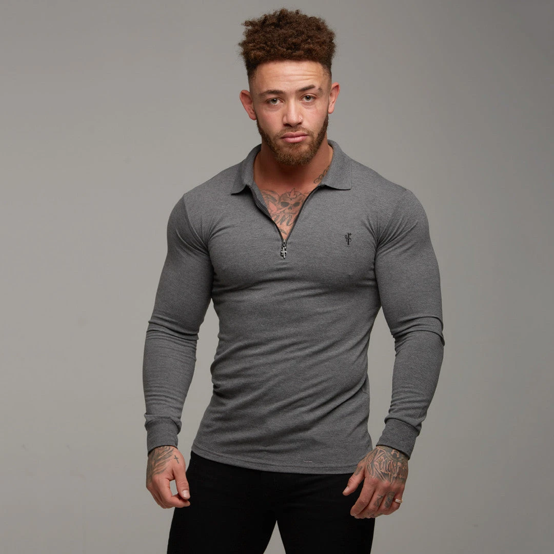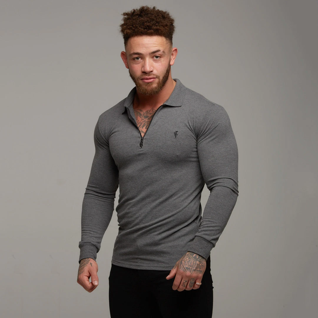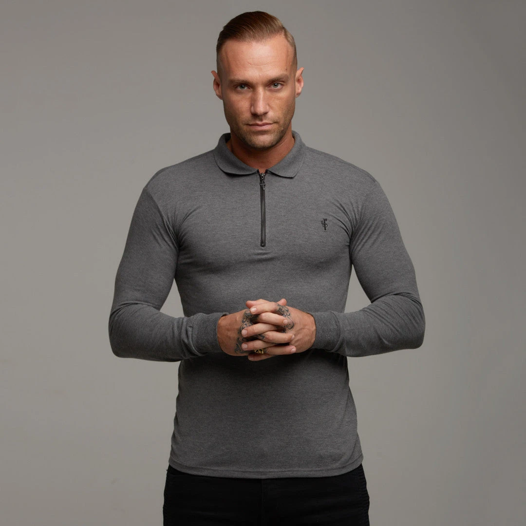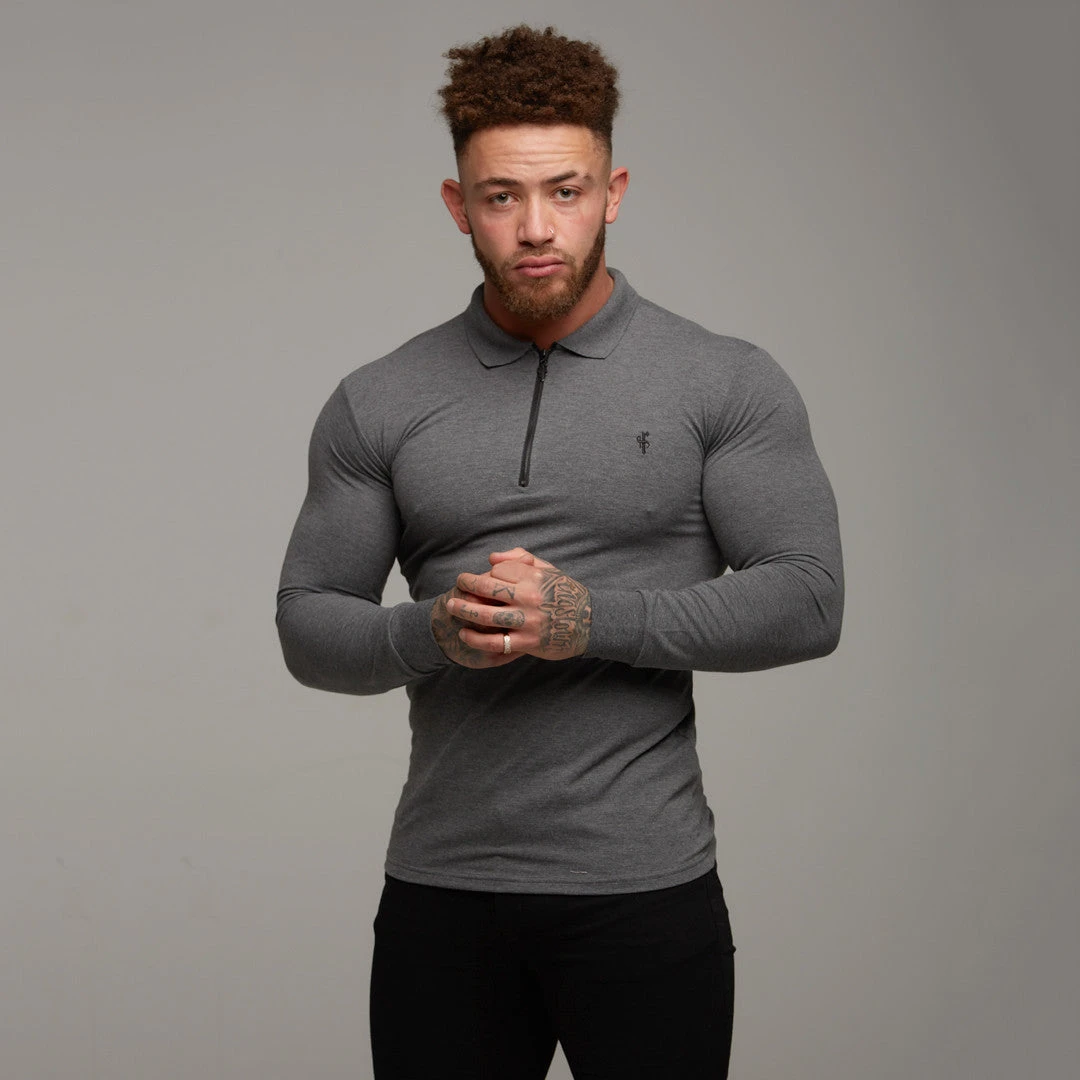 Father Sons Classic Dark Grey Zipped Polo Long Sleeve Shirt – FSH026