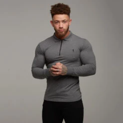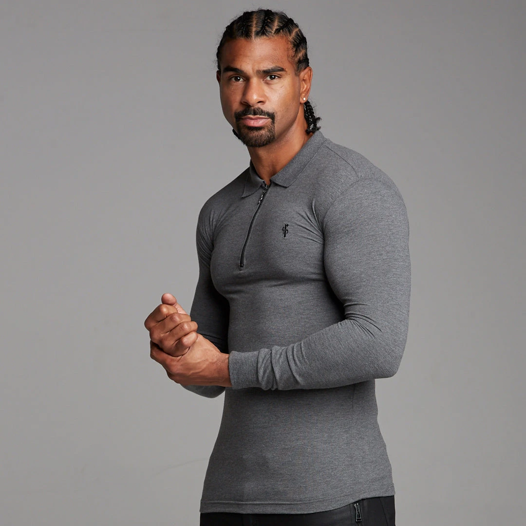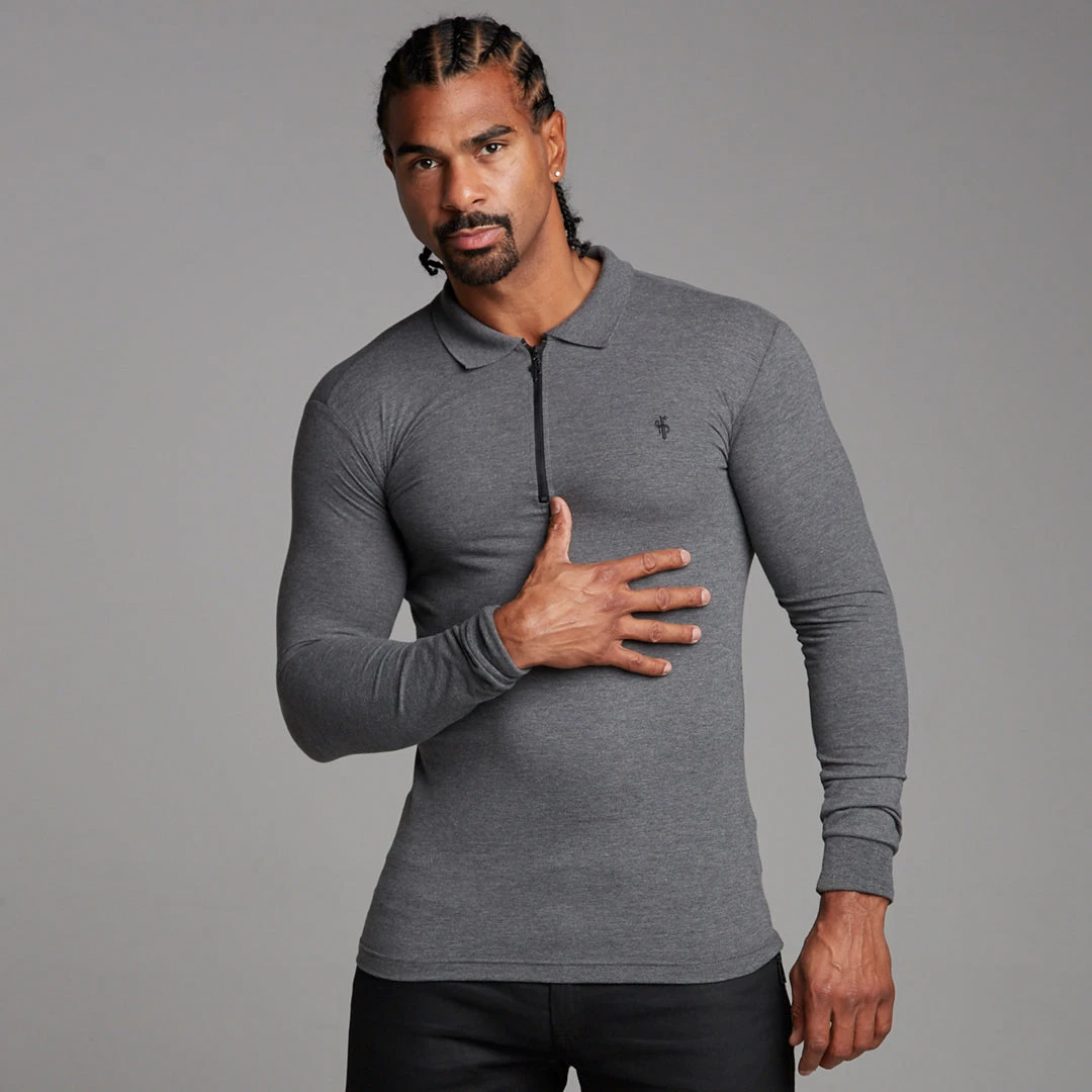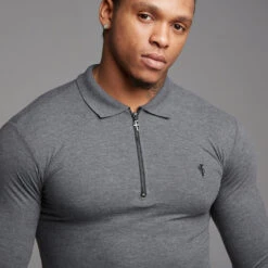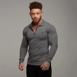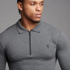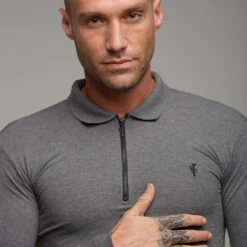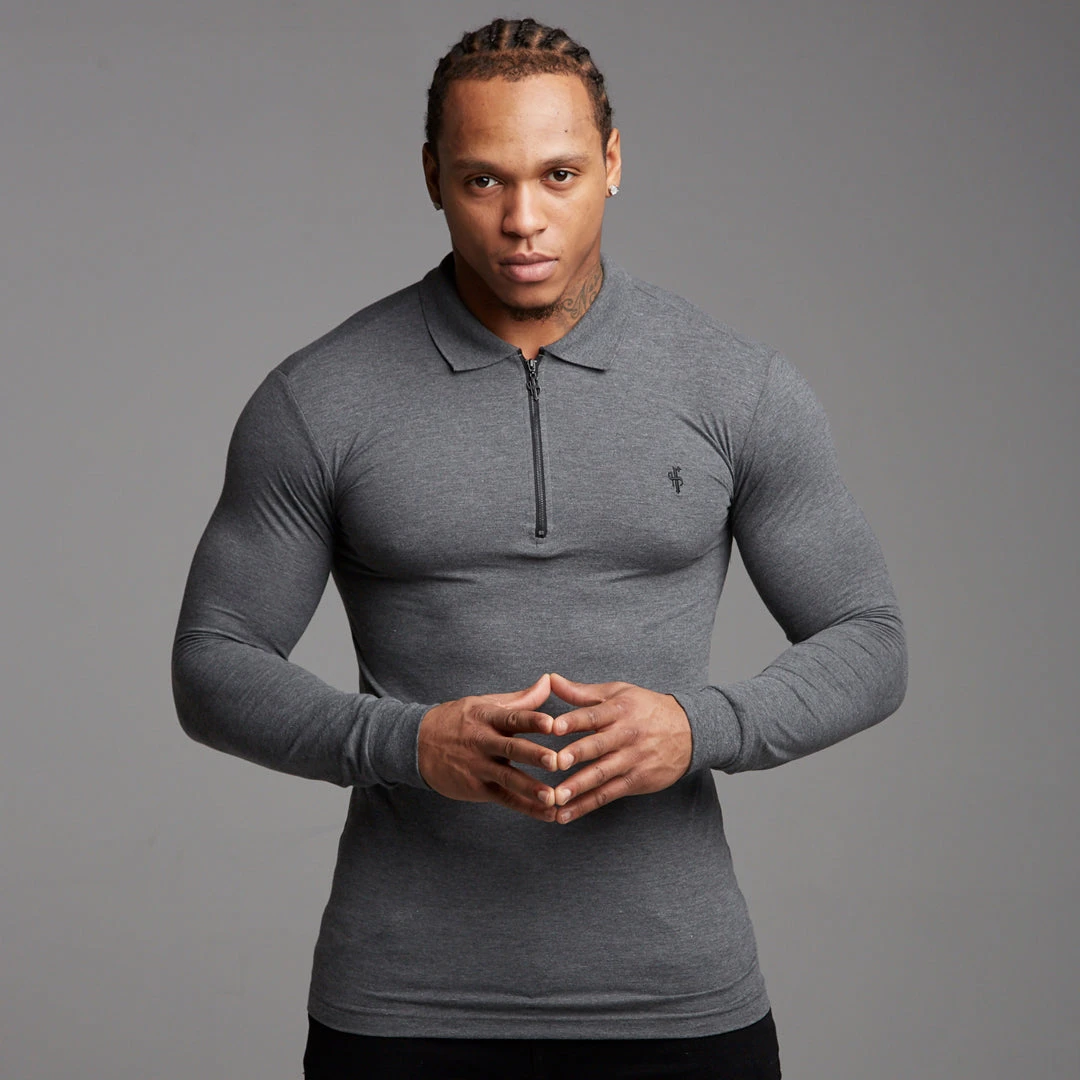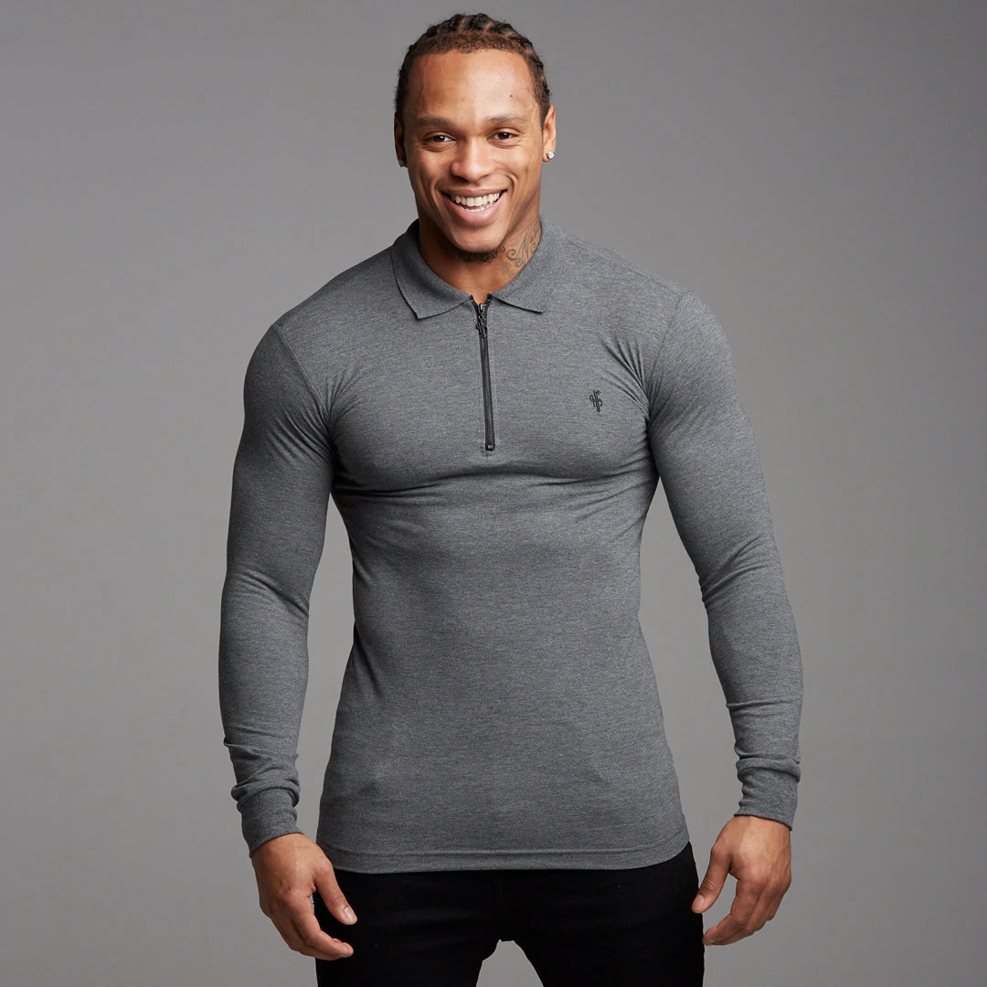 Father Sons Classic Dark Grey Zipped Polo Long Sleeve Shirt – FSH026