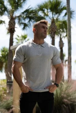 Father Sons Classic Grey Marl and Silver Zip Knitted Polo Shirt Short Sleeve – FSN132