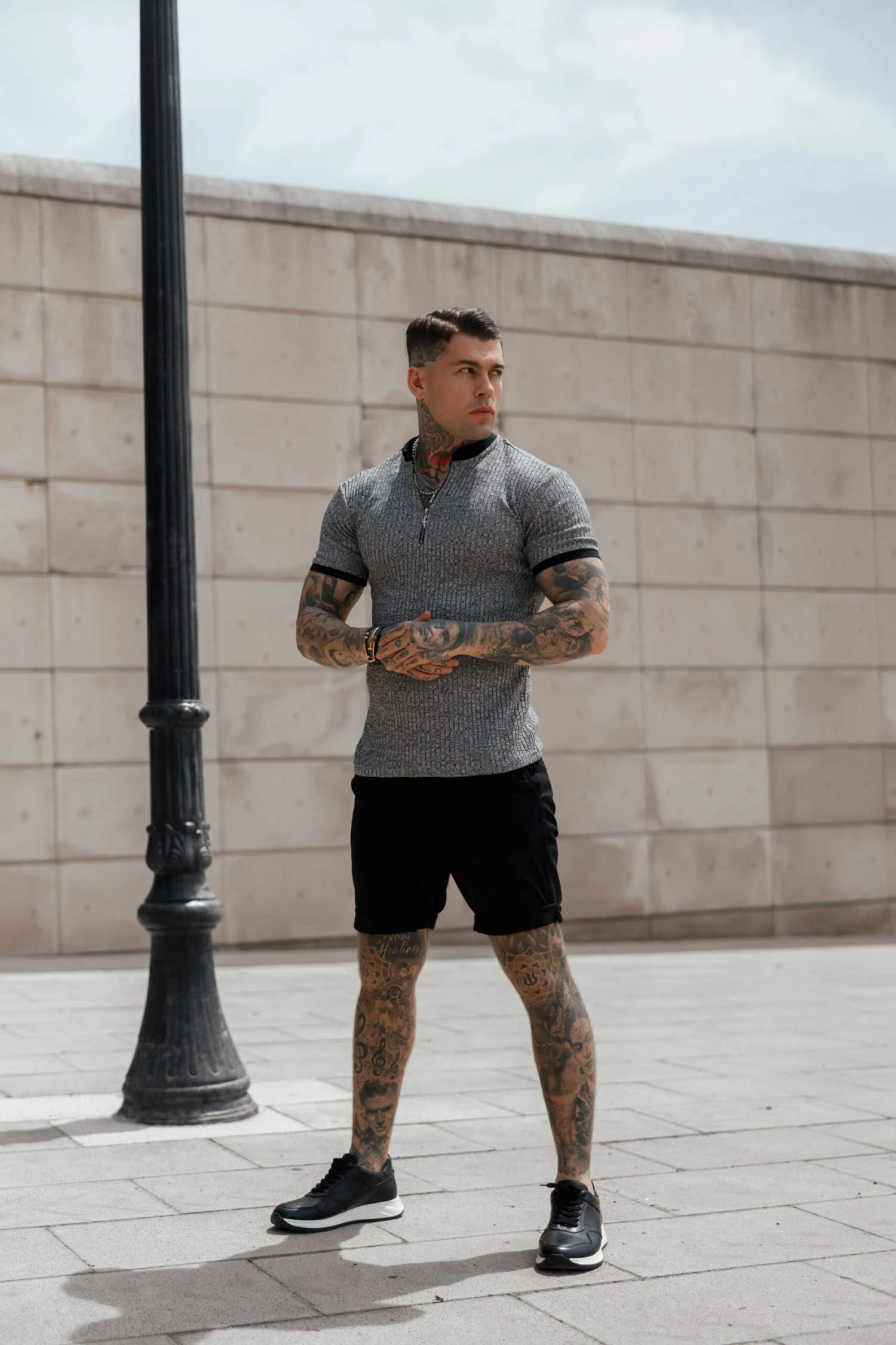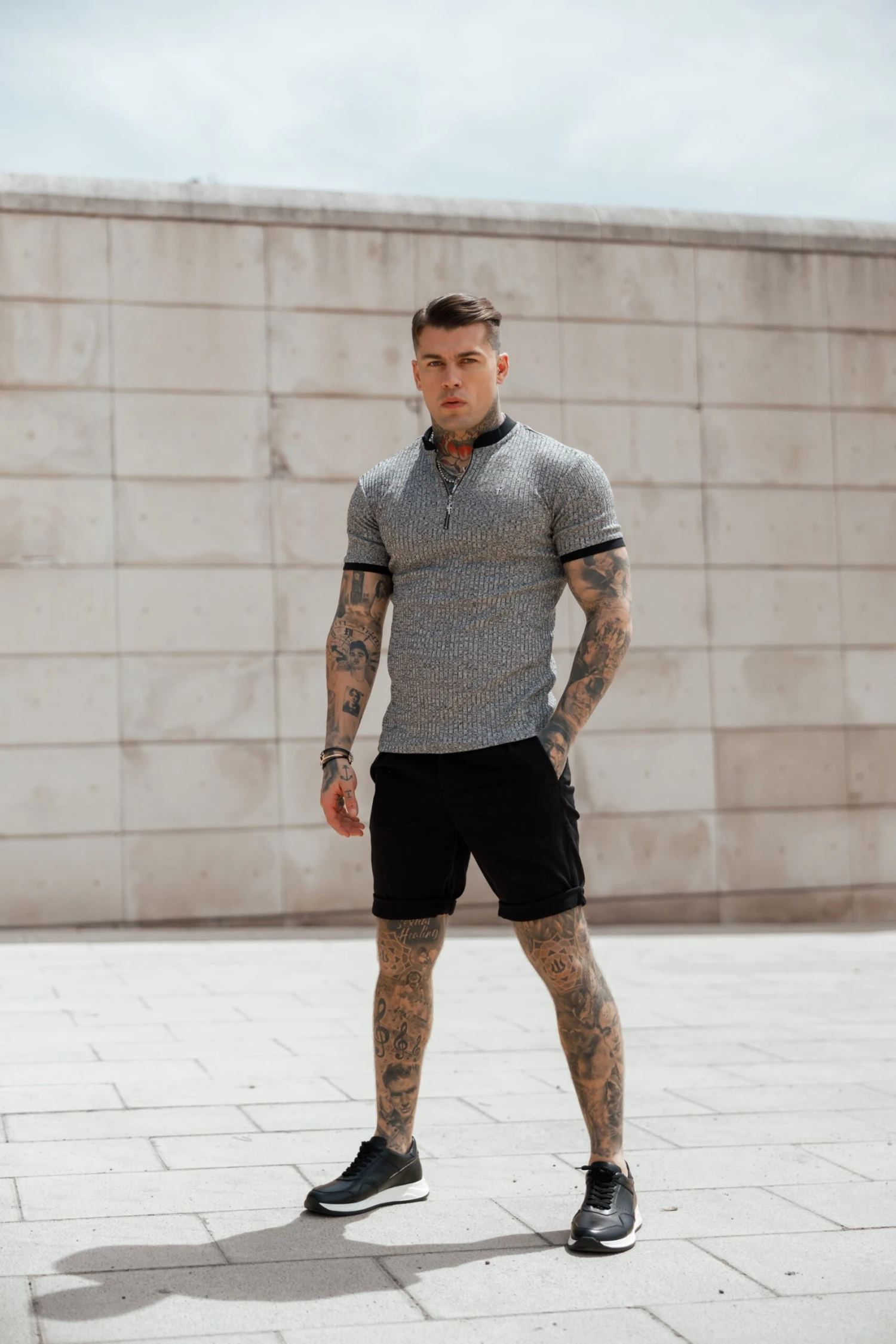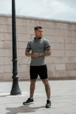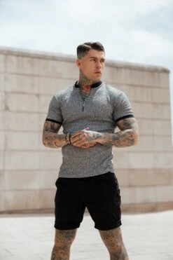 Father Sons Classic Grey Ribbed Zip Grandad Collar Shirt Short Sleeve – FSH762