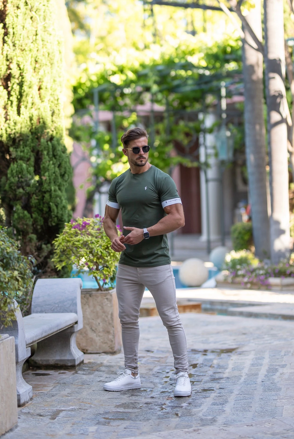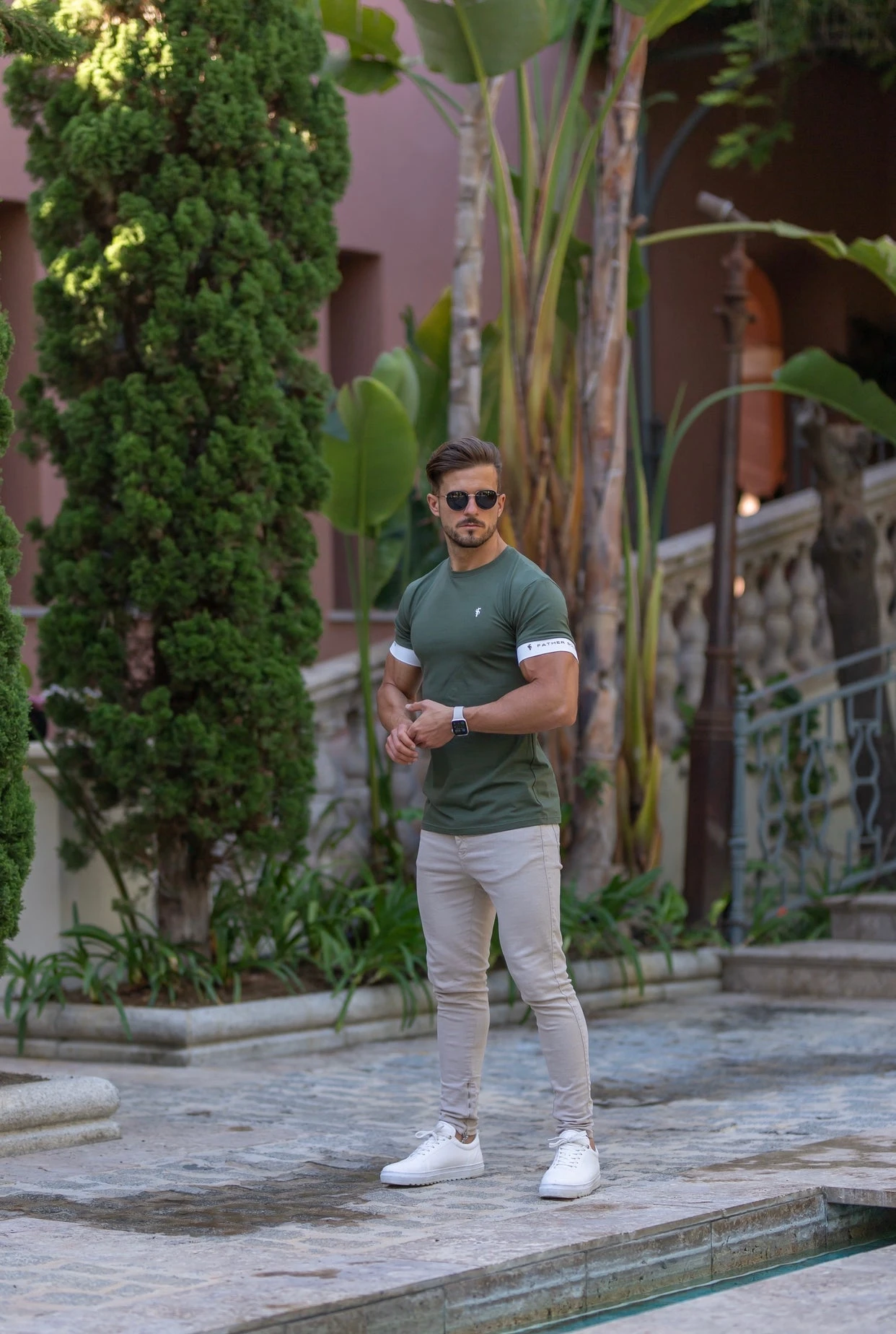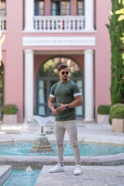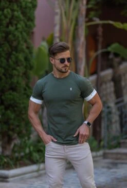 Father Sons Classic Khaki Crew T Shirt with FS Elastic Sleeve Branding – FSH647