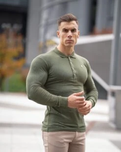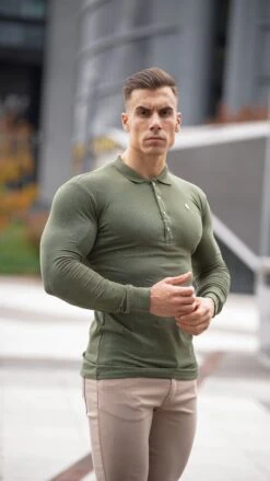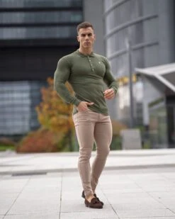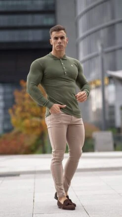 Father Sons Classic Khaki Long Sleeve Polo Shirt with Metal Emblem Decal & Buttons – FSH513