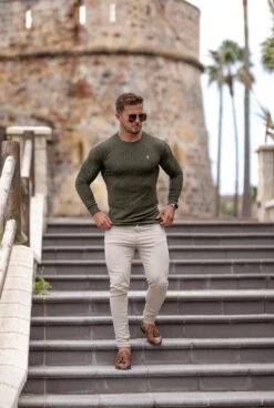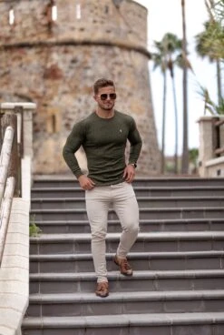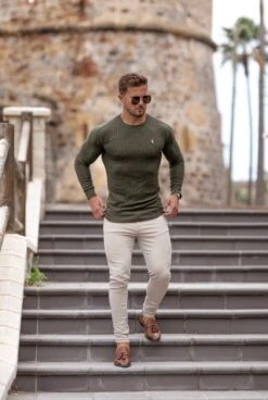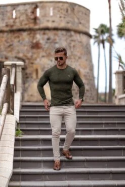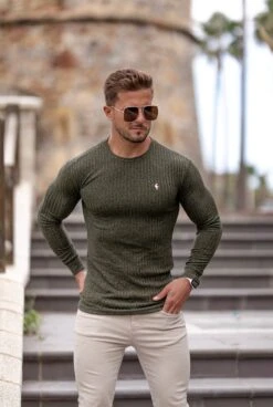 Father Sons Classic Khaki Ribbed Knit Jumper With Gold Emblem – FSH536