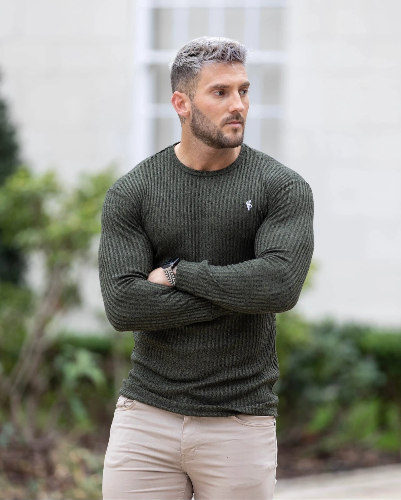 Father Sons Classic Khaki / White Ribbed Knit Jumper – FSH769