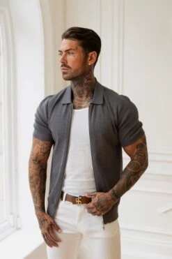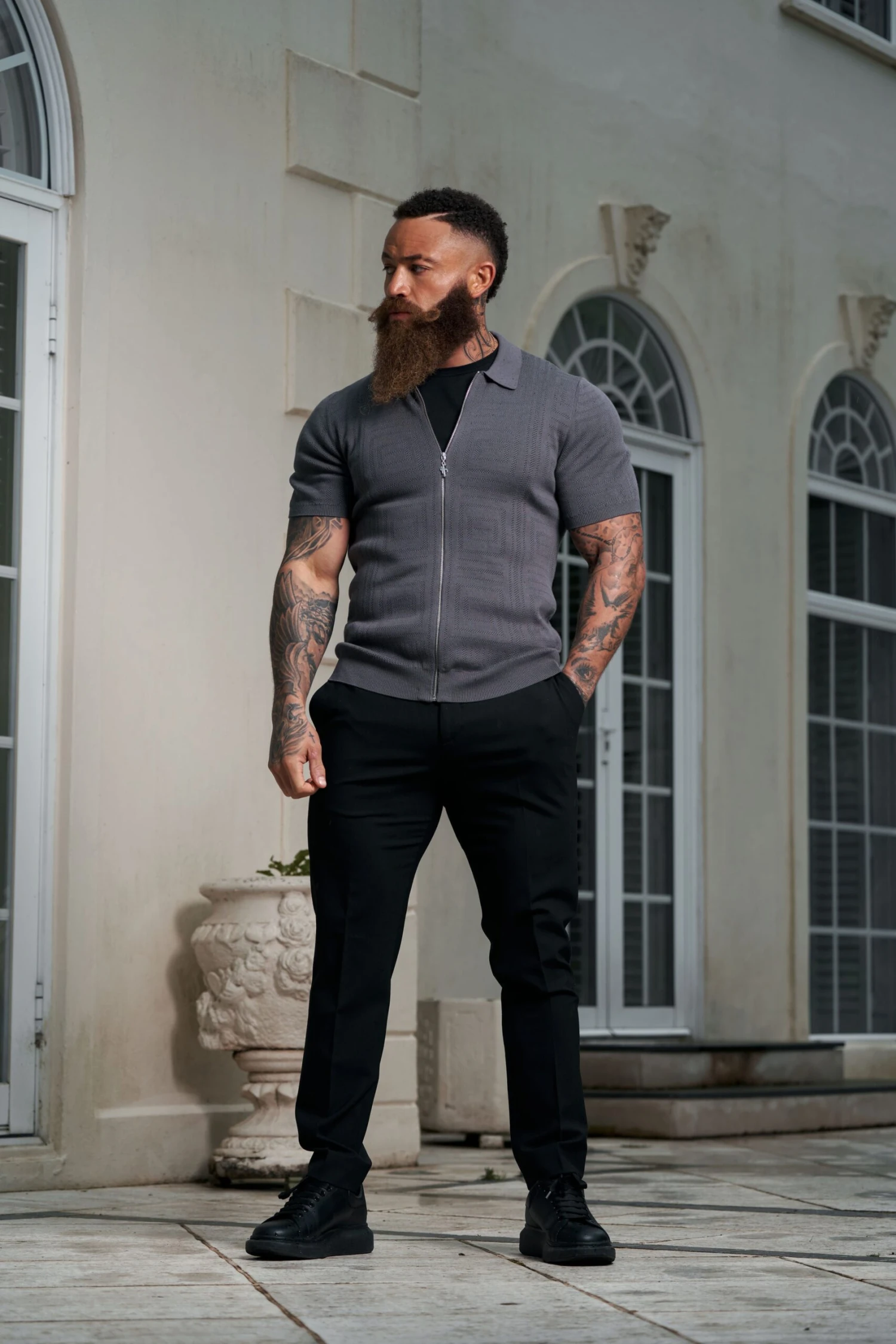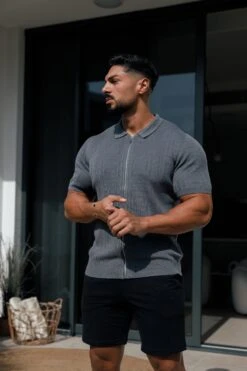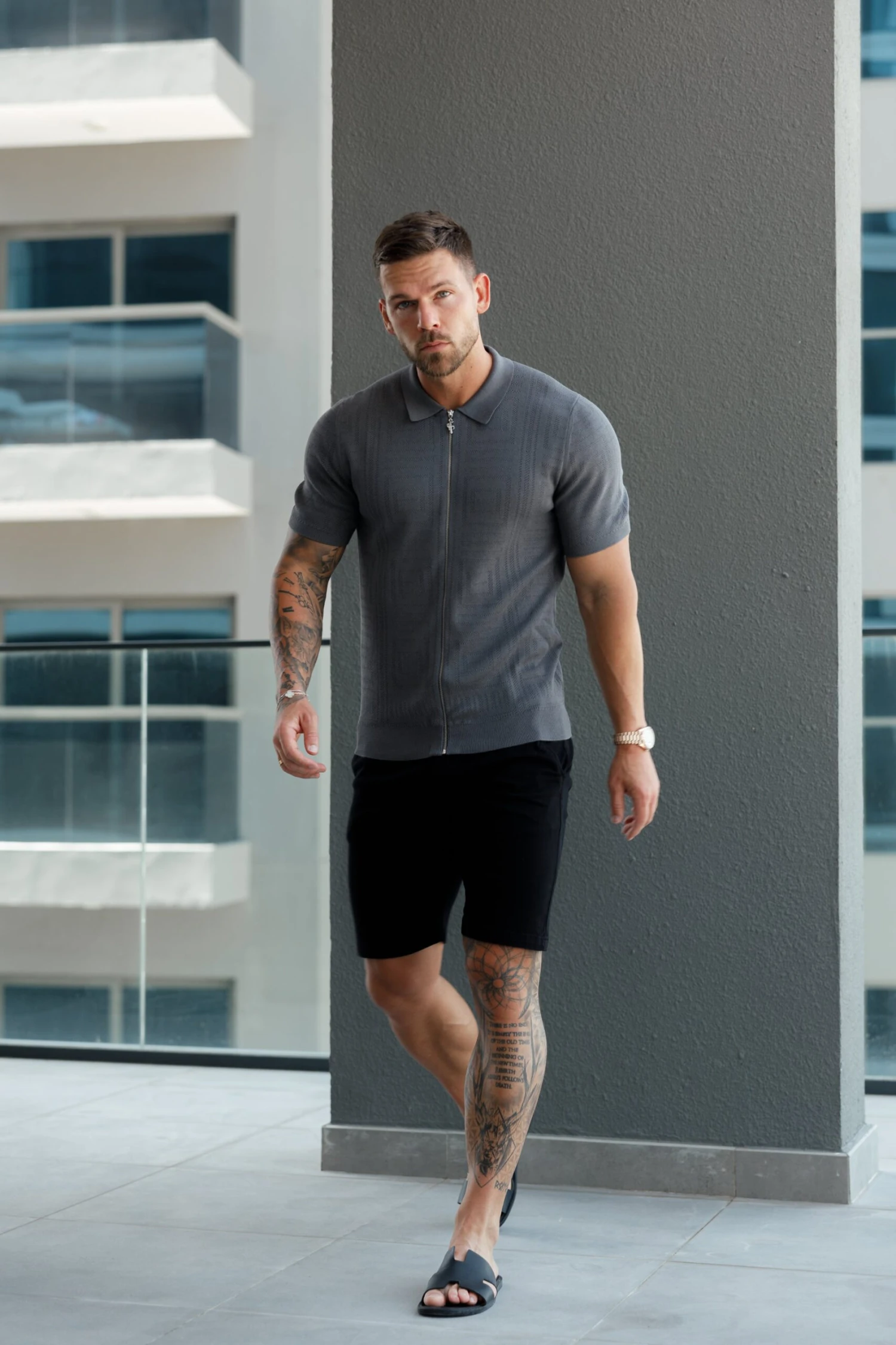 Father Sons Classic Knitted Geo Design With Full Length Zip Gunmetal Short Sleeve – FSN150