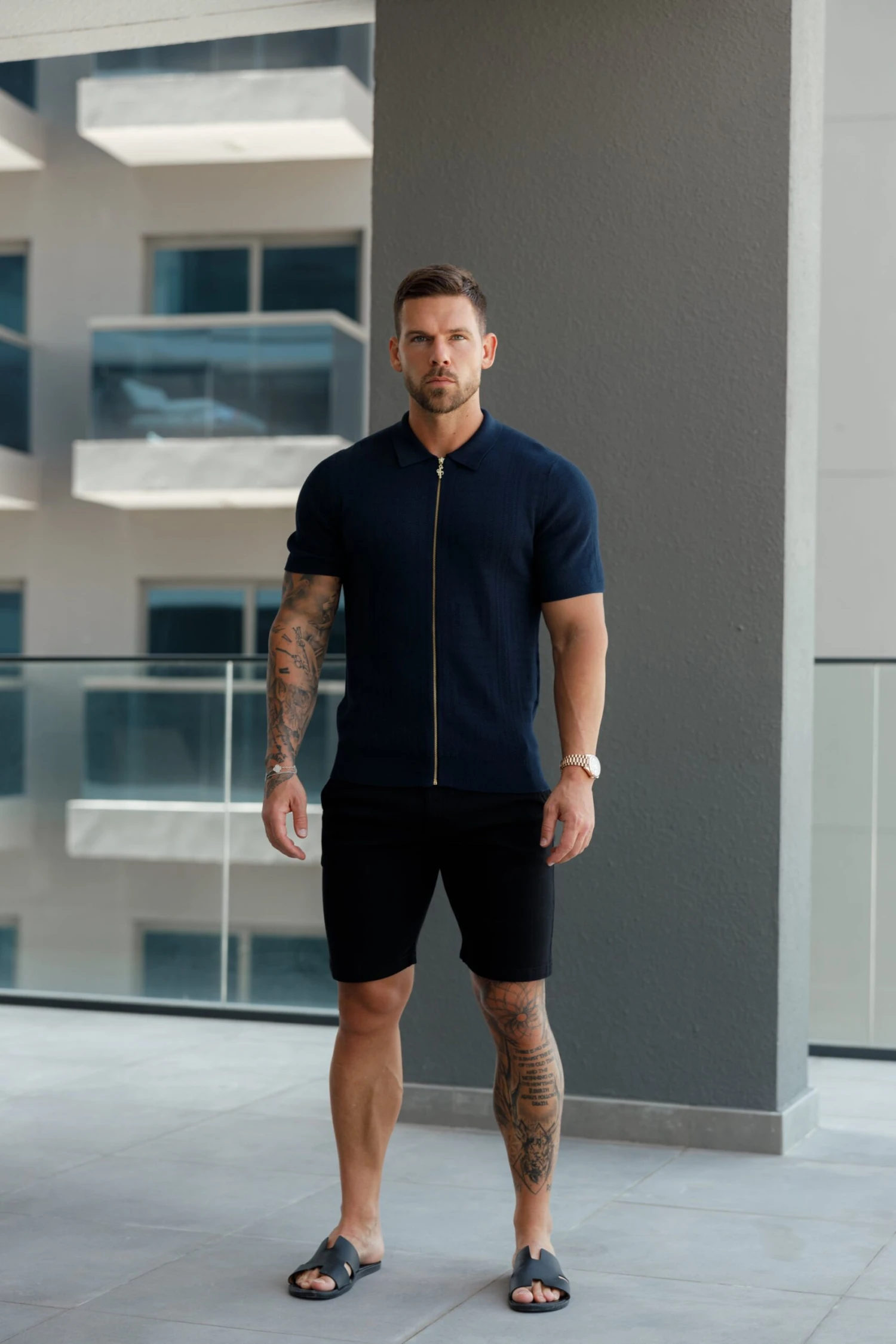 Father Sons Classic Knitted Geo Design With Full Length Zip Navy Short Sleeve – FSN149