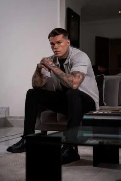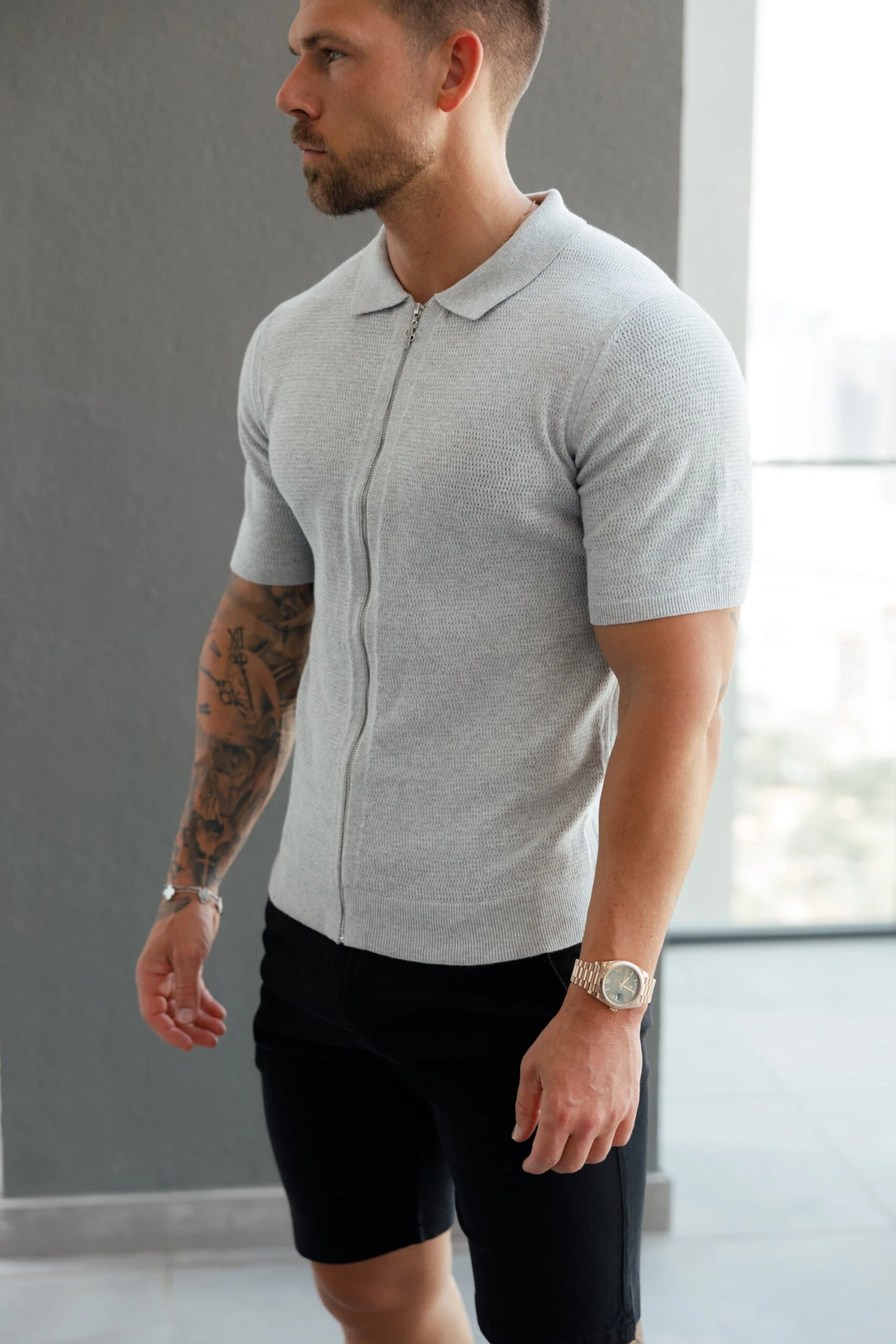 Father Sons Classic Knitted Textured Design With Full Length Zip Light Grey Short Sleeve – FSN154