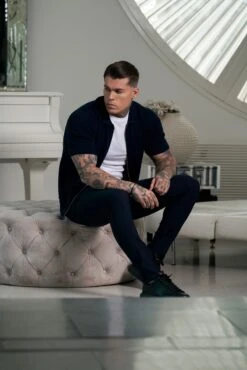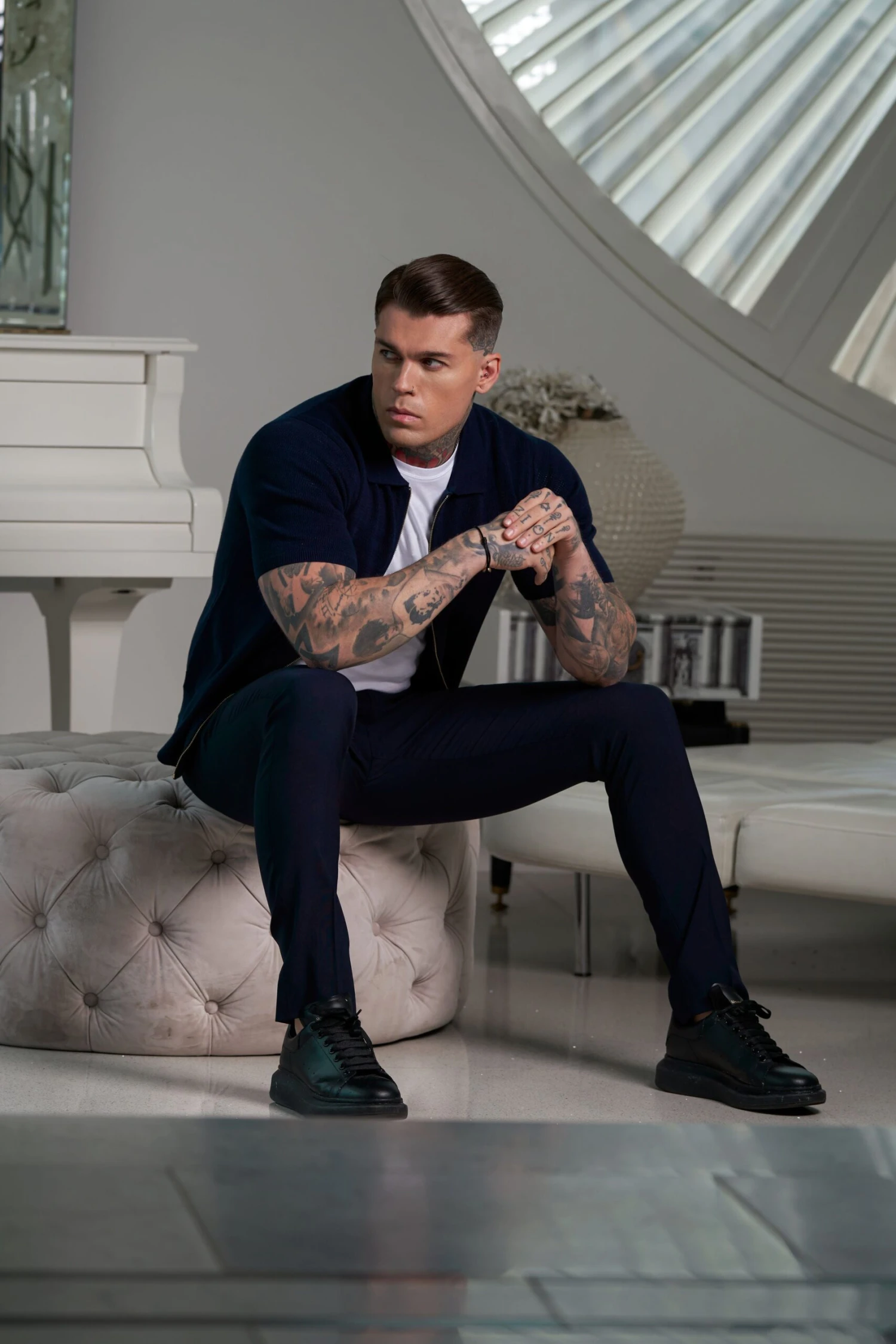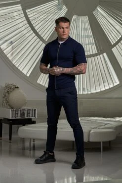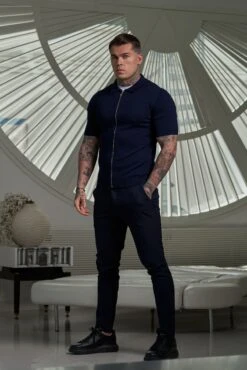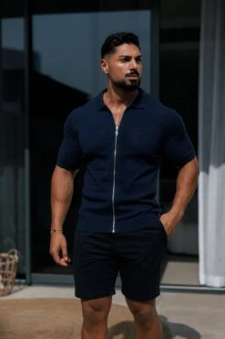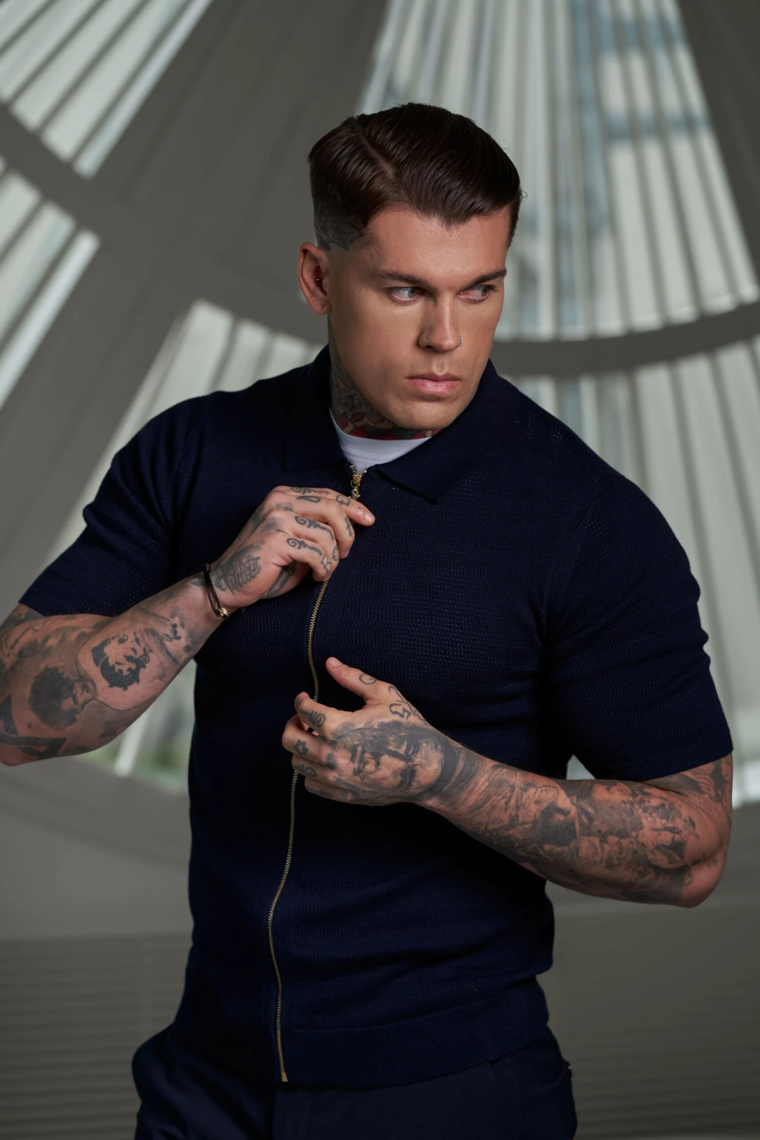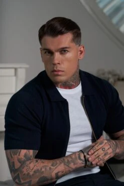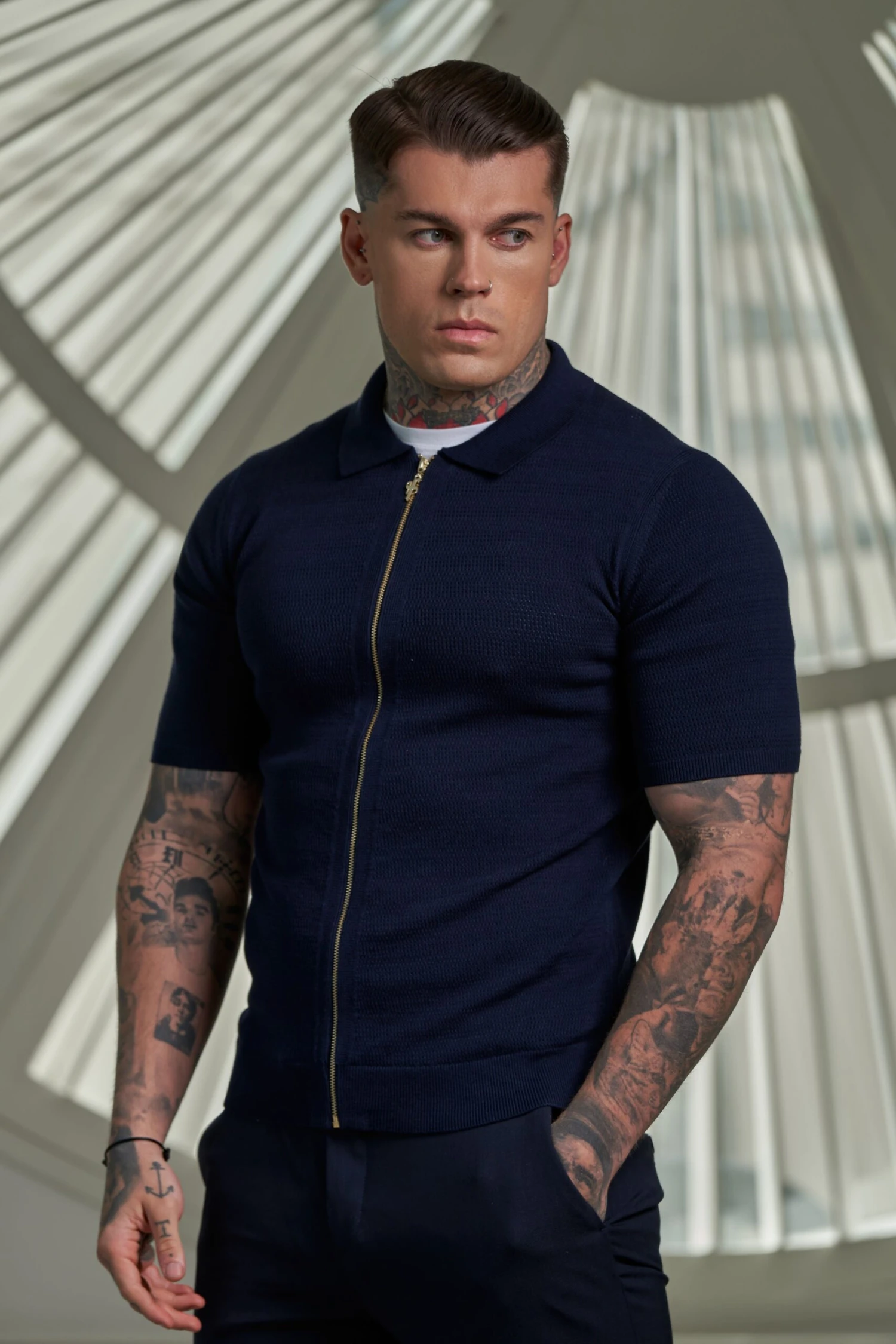 Father Sons Classic Knitted Textured Design With Full Length Zip Navy Short Sleeve – FSN153