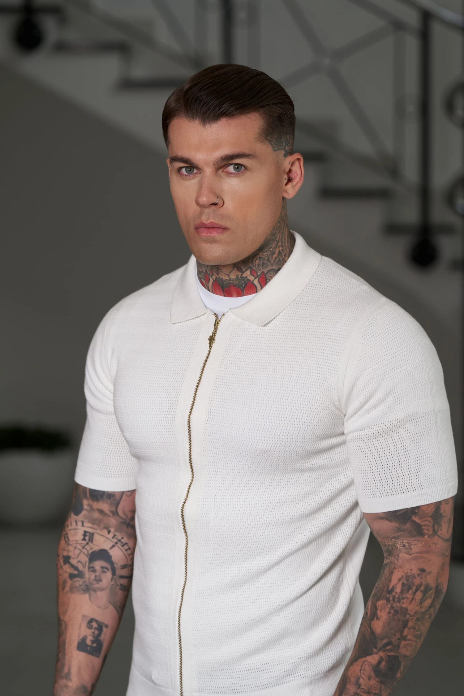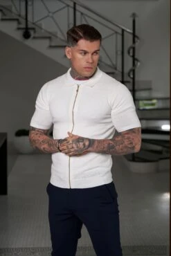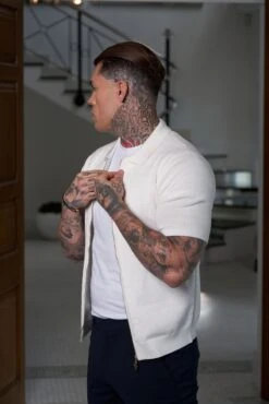 Father Sons Classic Knitted Textured Design With Full Length Zip Off White Short Sleeve – FSN152