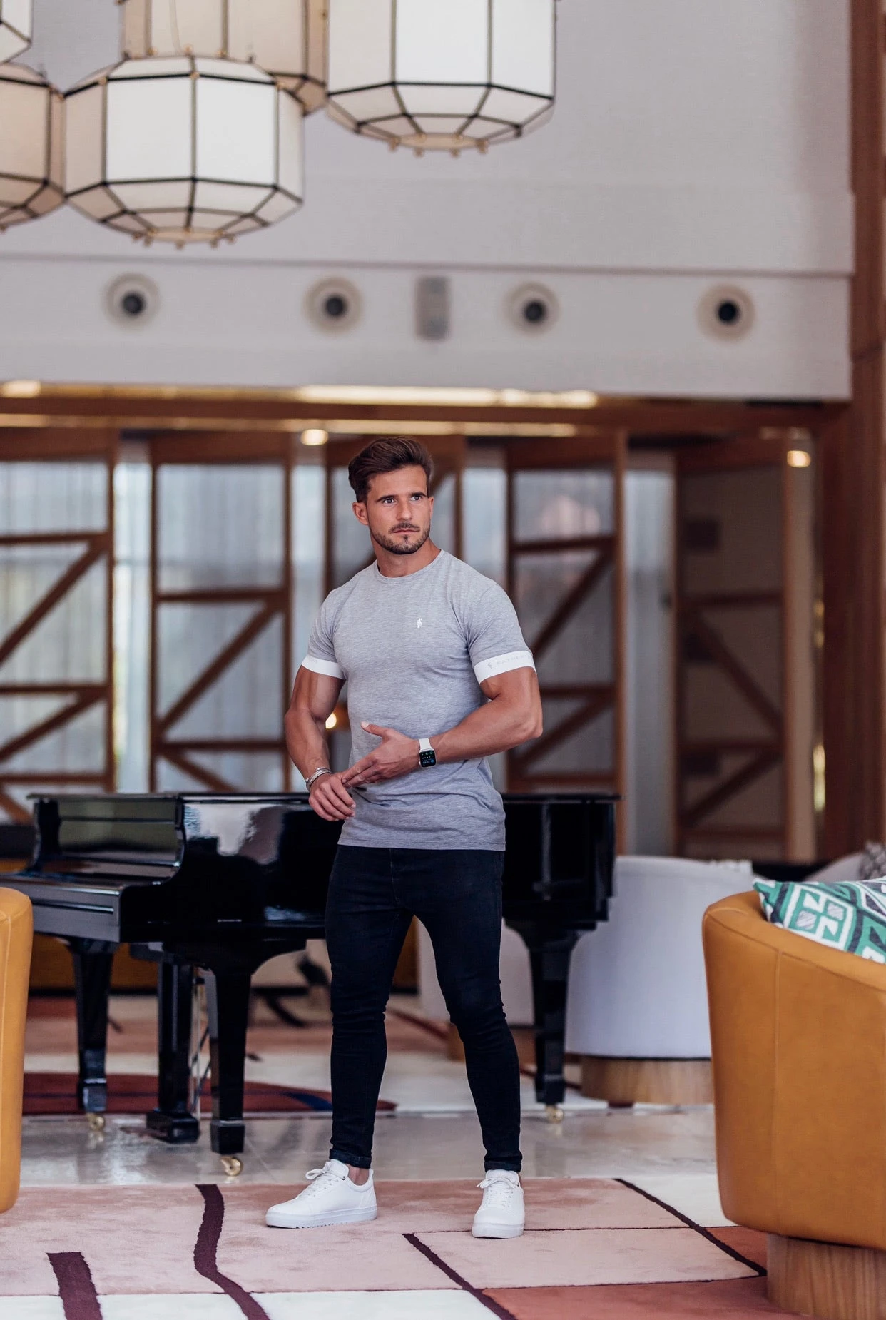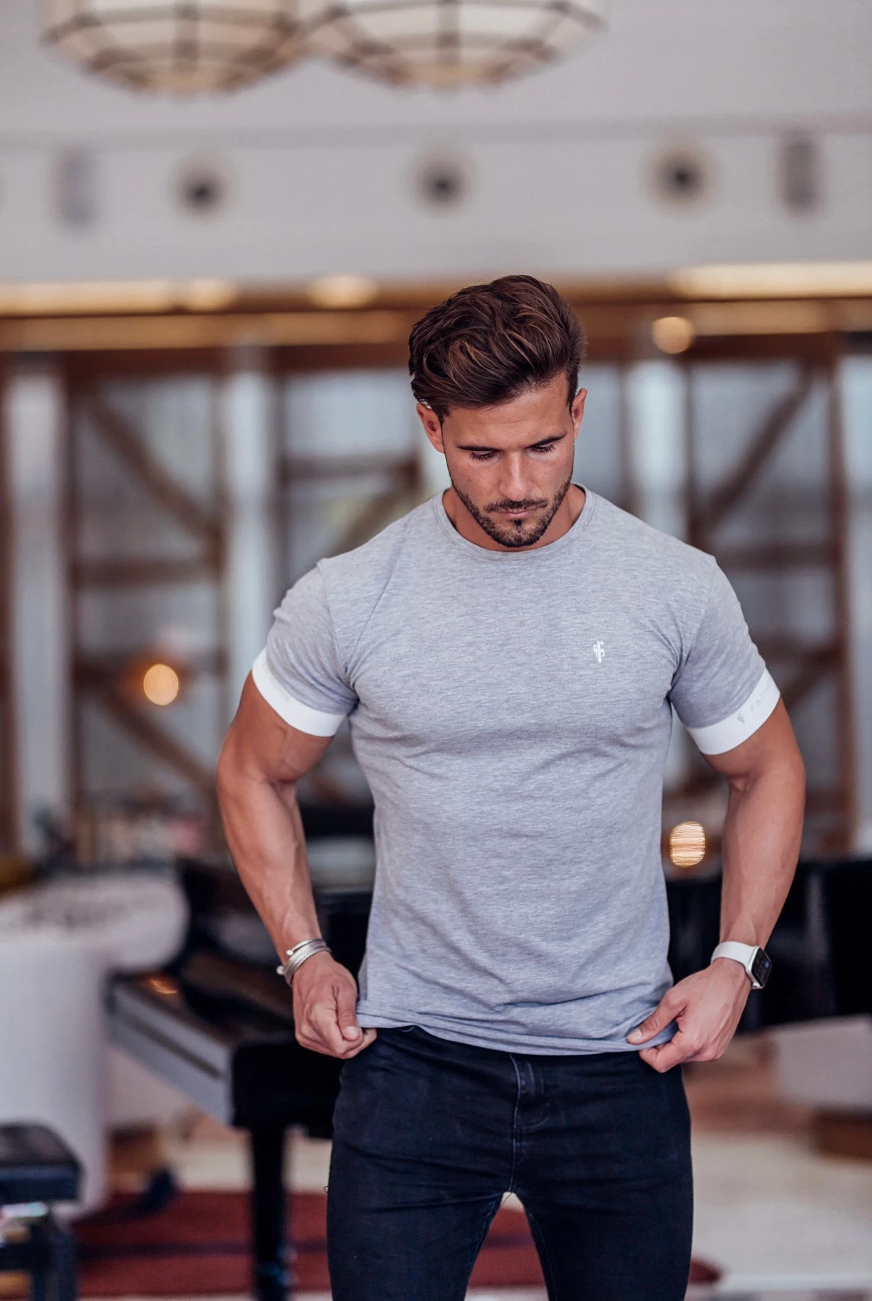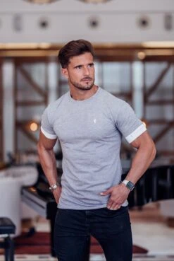 Father Sons Classic Light Grey Crew T Shirt with FS Sleeve Branding – FSH624