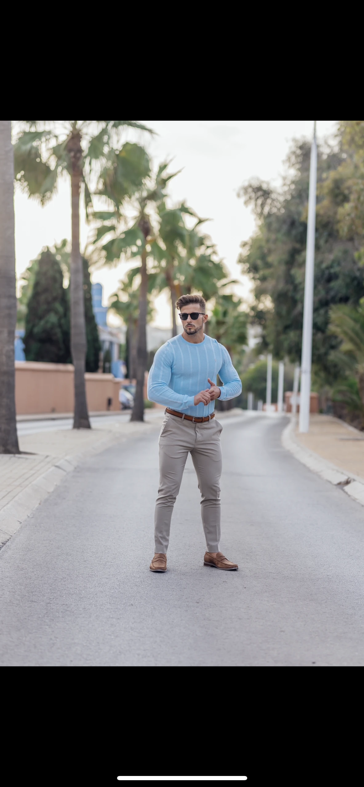 Father Sons Classic Long Sleeve Baby Blue Knitted Wide Rib with Gold Emblem – FSH738