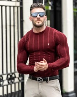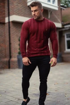 Father Sons Classic Long Sleeve Burgundy Knitted Wide Rib with Gold Emblem – FSH602