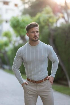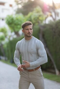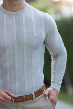 Father Sons Classic Long Sleeve Light Grey Knitted Wide Rib with Gold Emblem- FSH606