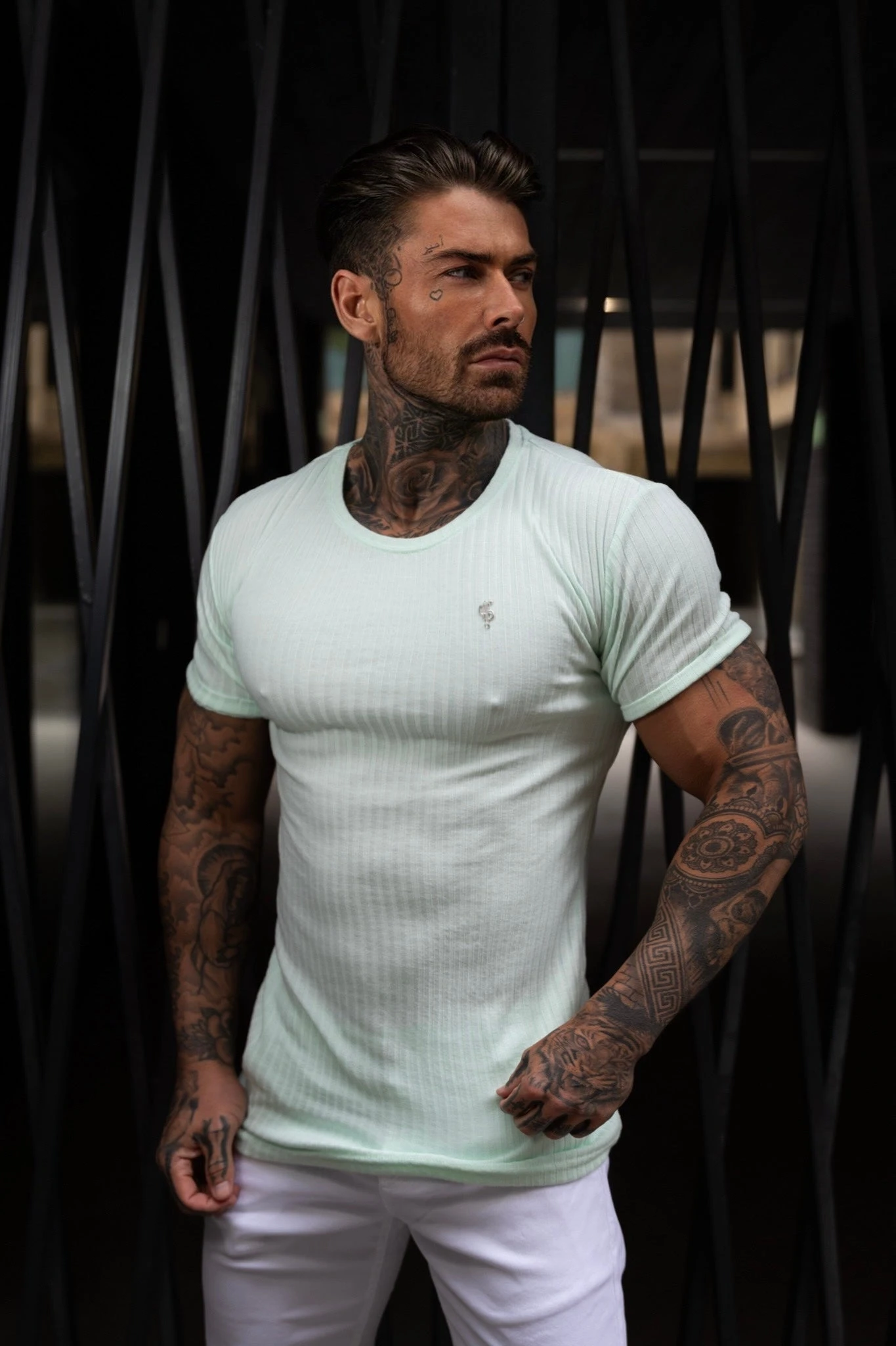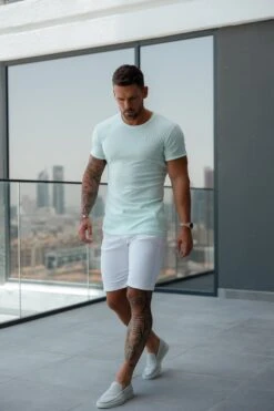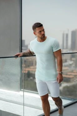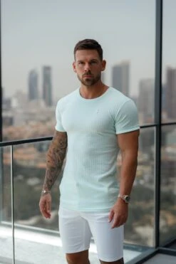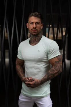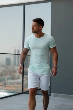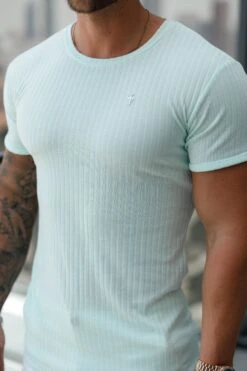 Father Sons Classic Mint / Silver Ribbed Knit Super Slim Short Sleeve Crew – FSH1094