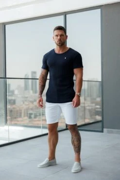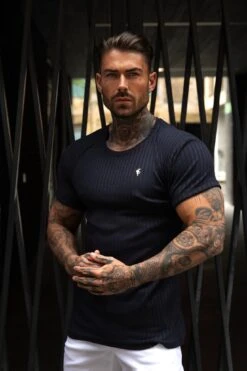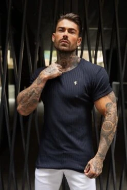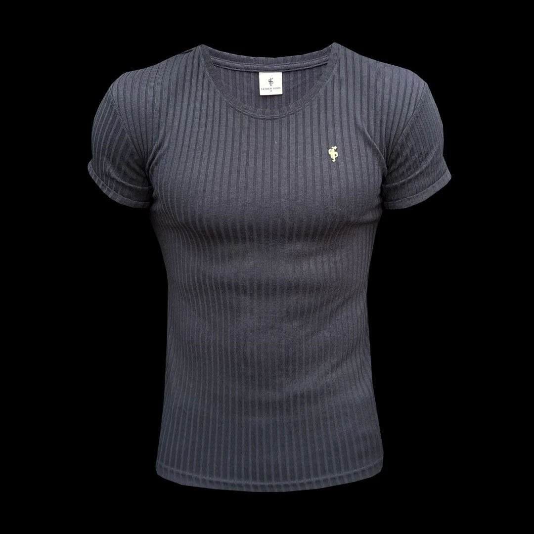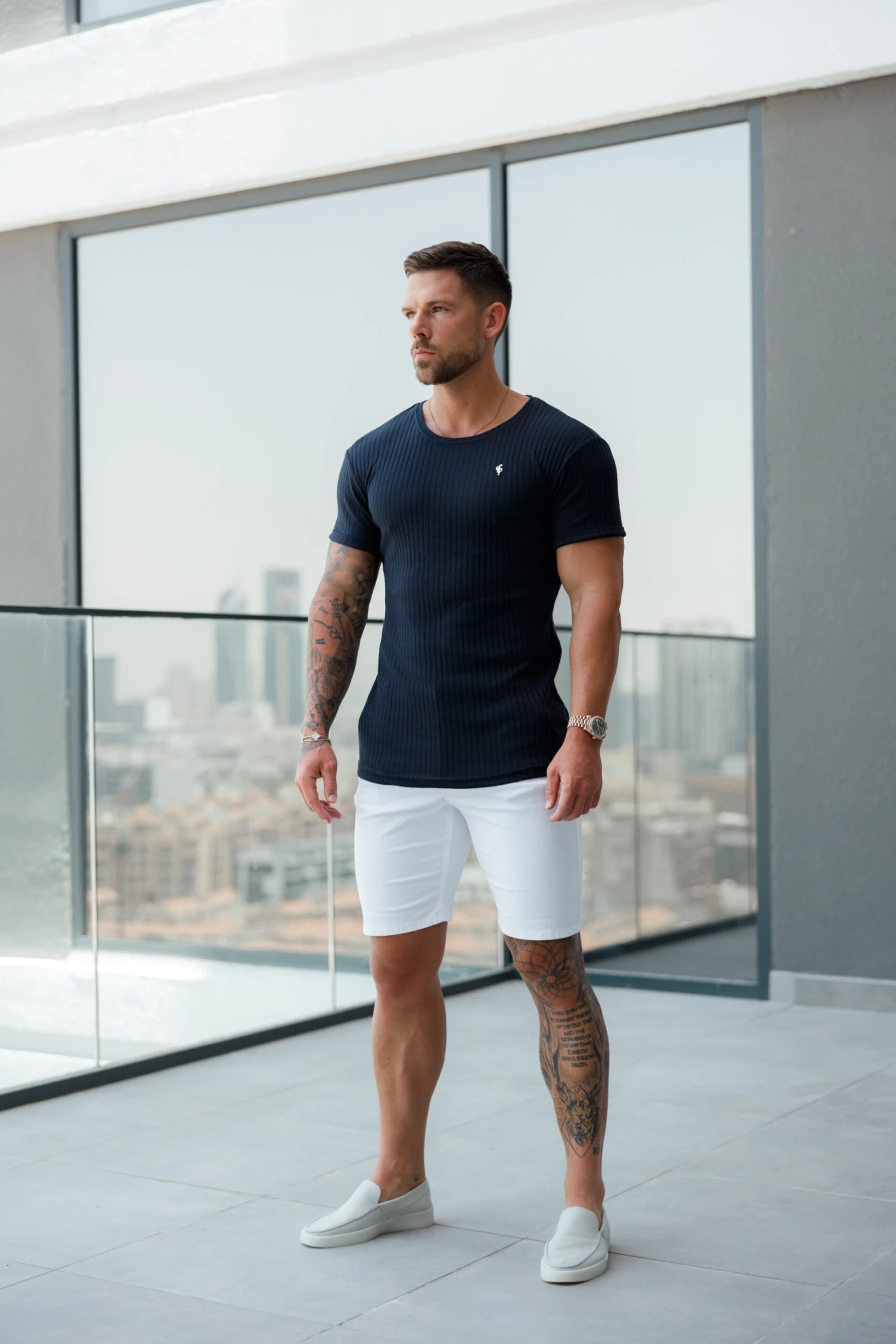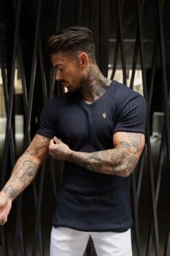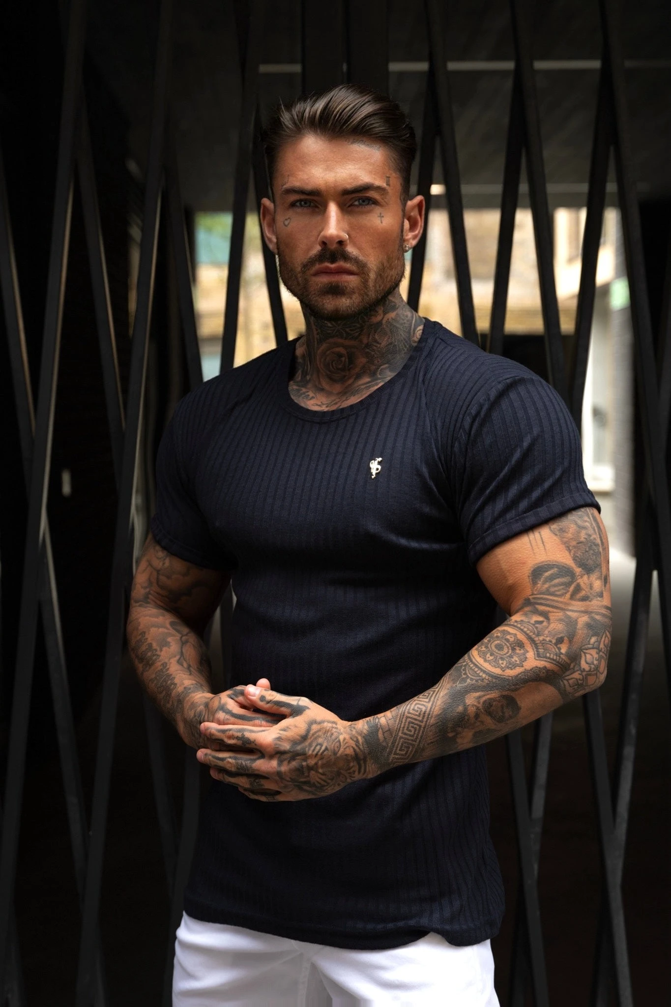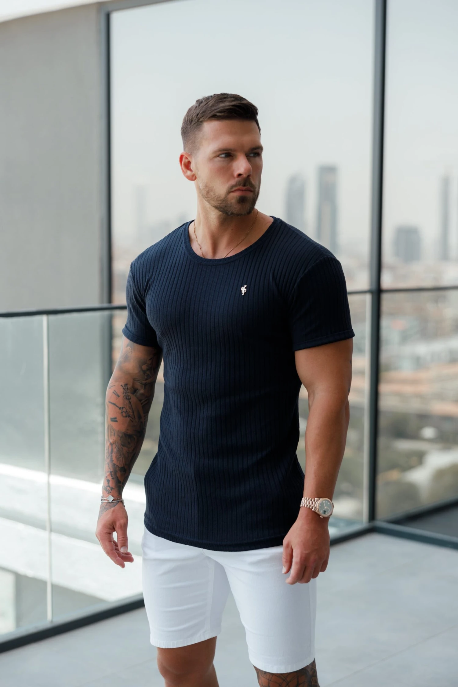 Father Sons Classic Navy / Gold Ribbed Knit Super Slim Short Sleeve Crew – FSH1083