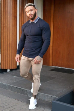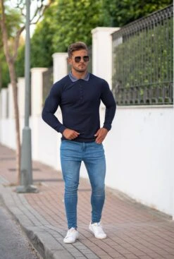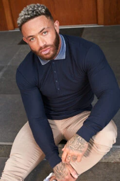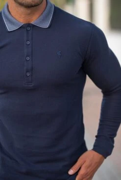 Father Sons Classic Navy Honeycomb Textured Polo Shirt With Contrast Long Sleeve – FSH425