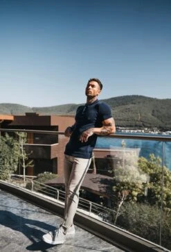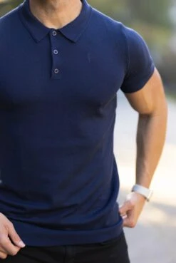 Father Sons Classic Navy Merino Wool Knitted Polo Jumper Short Sleeve With FS Embroidery – FSN026
