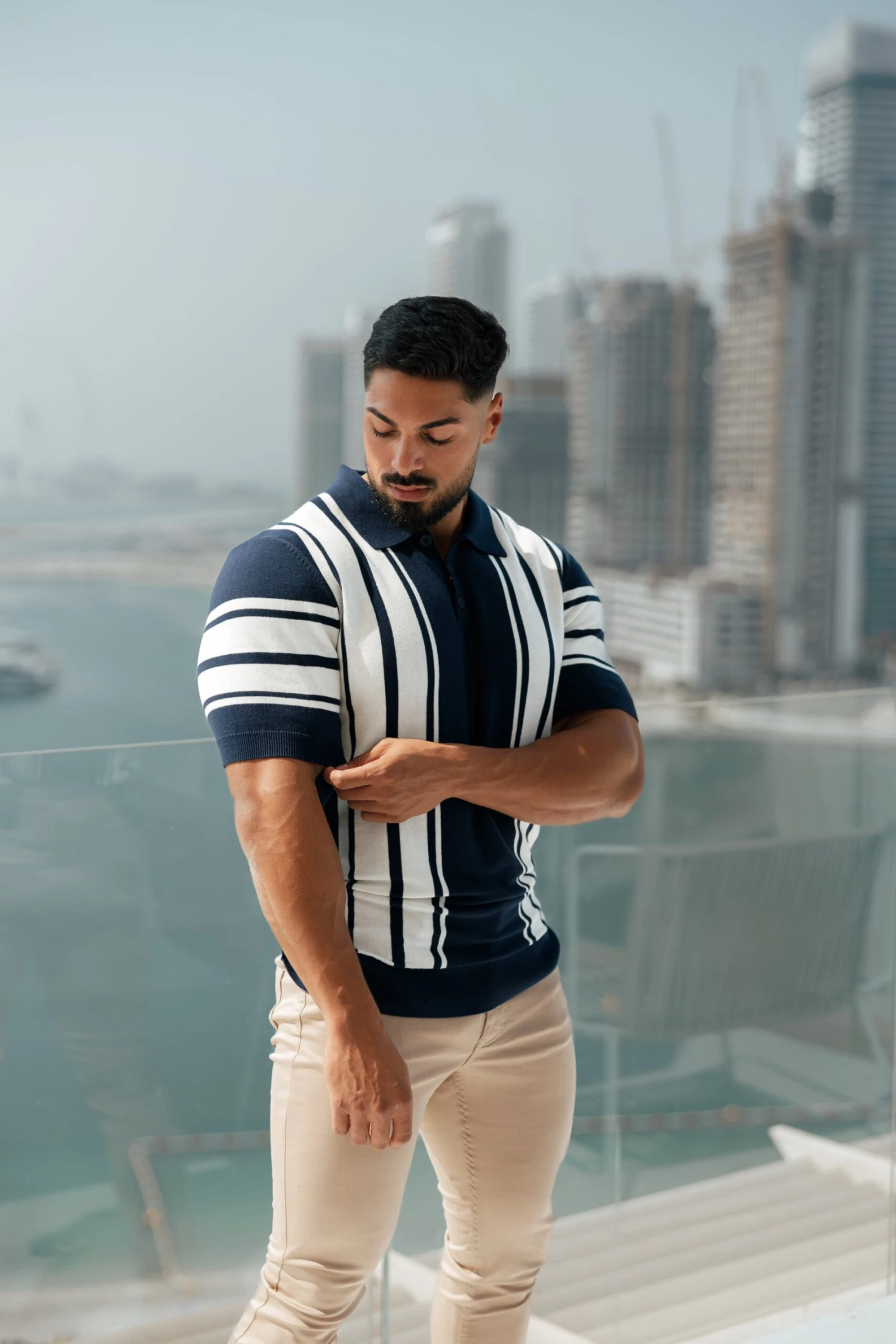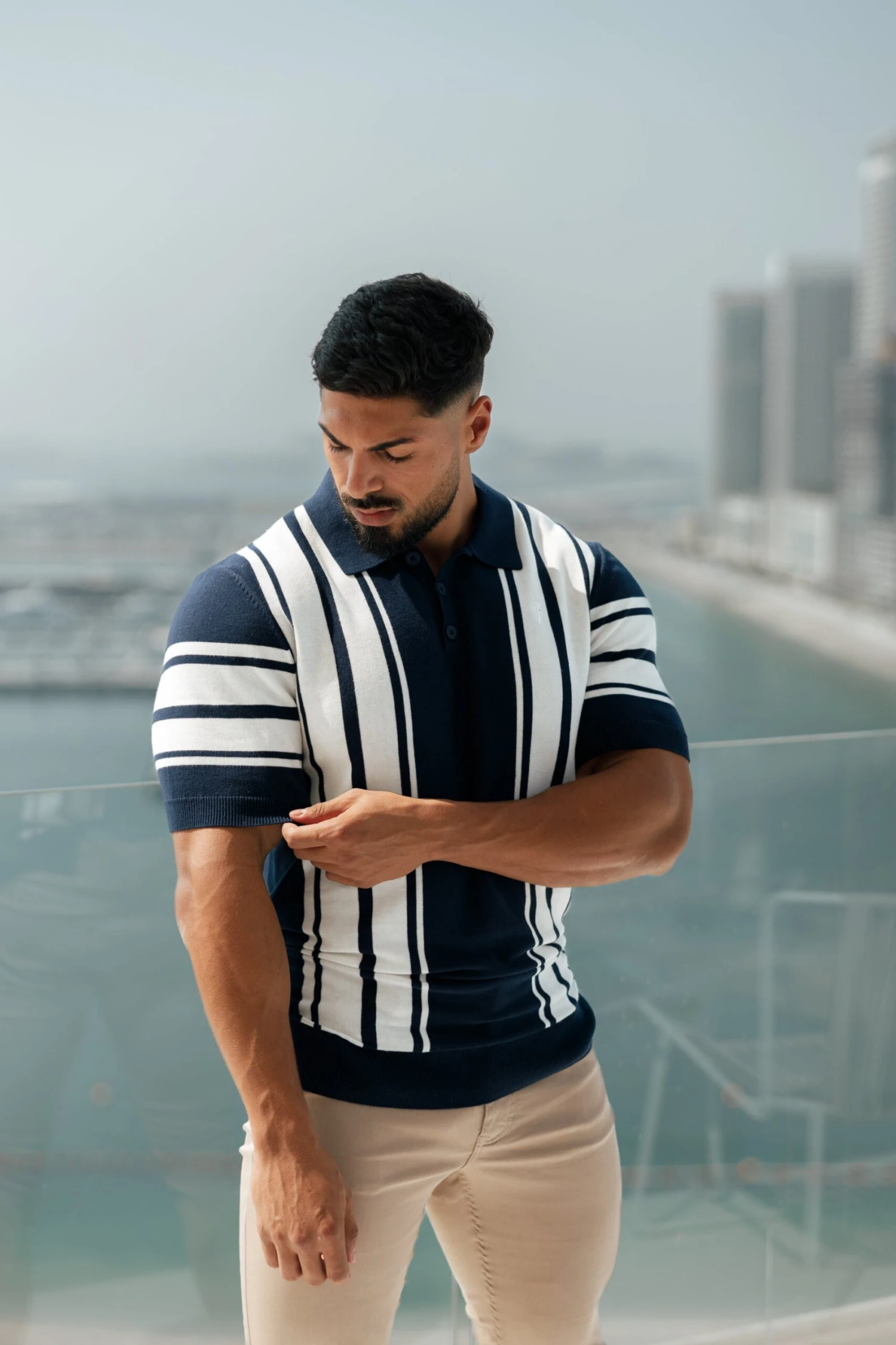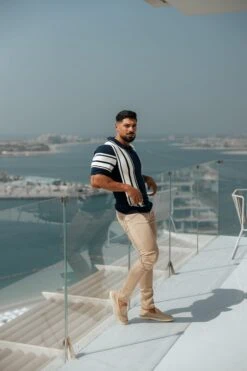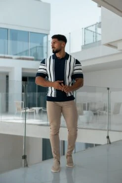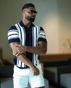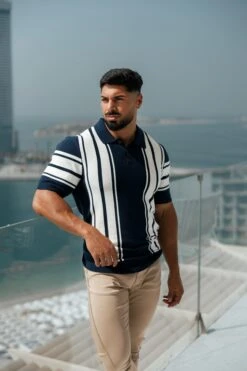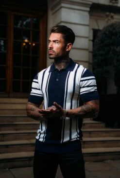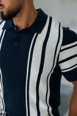 Father Sons Classic Navy / Off White Knitted Vertical Stripe Polo Short Sleeve – FSN105