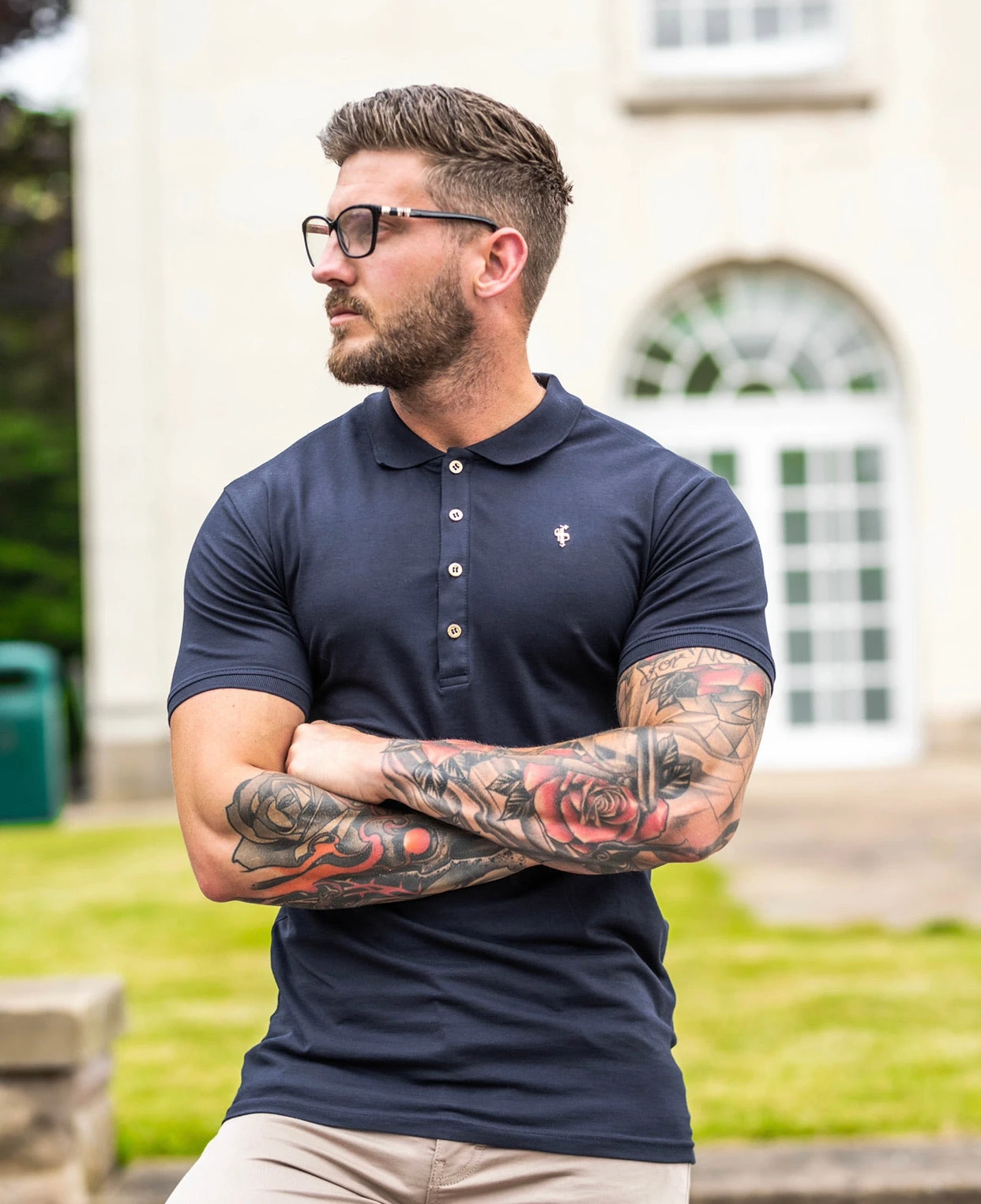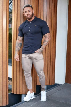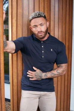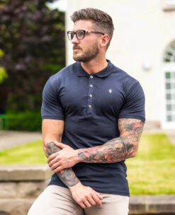 Father Sons Classic Navy Polo Shirt with Gold Metal Emblem Decal & Buttons – FSH462