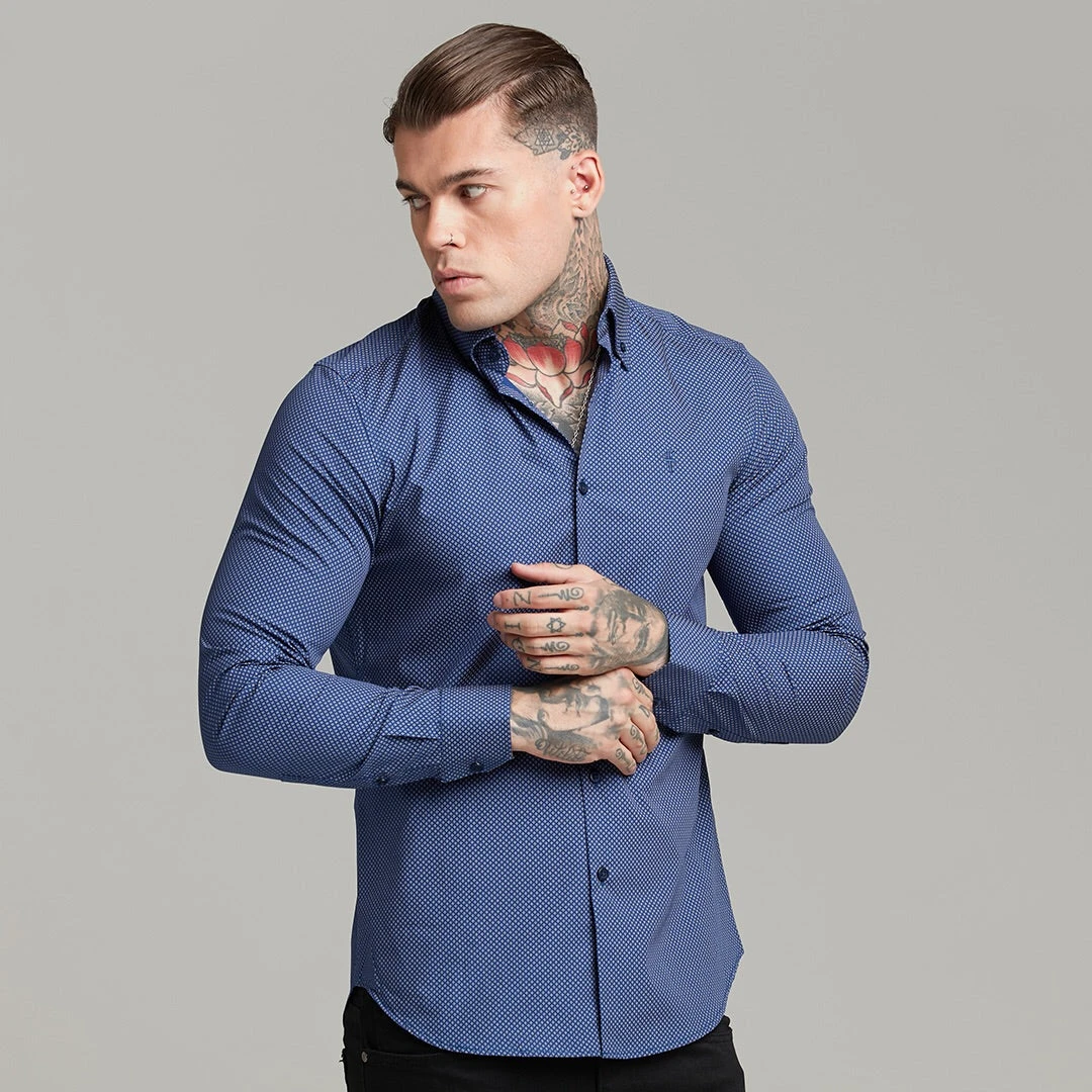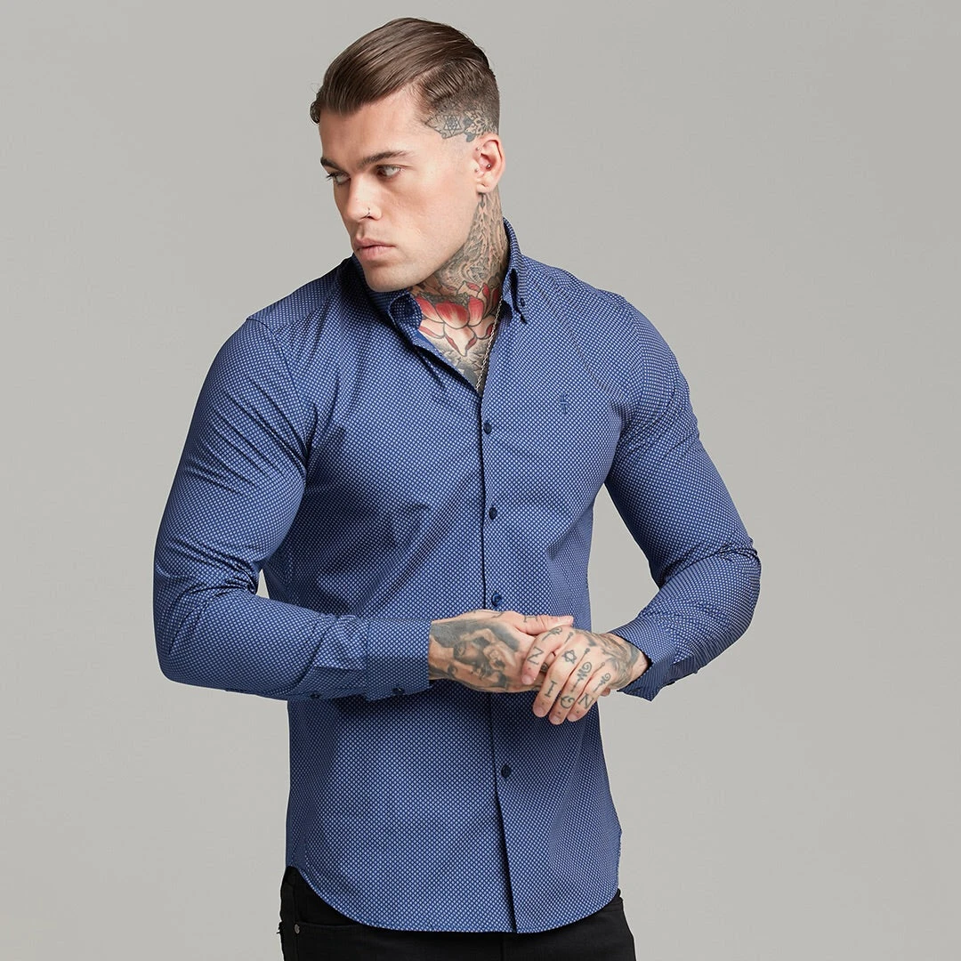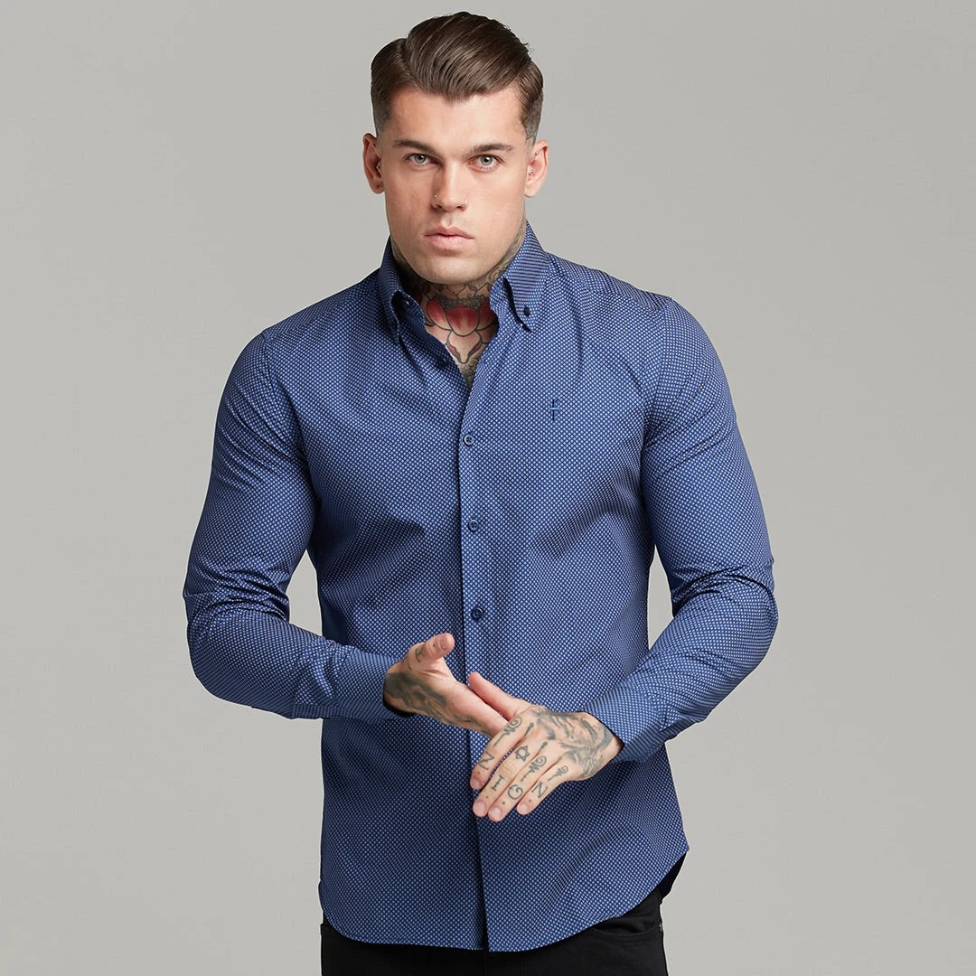 Father Sons Classic Navy Print Button Down – FS606