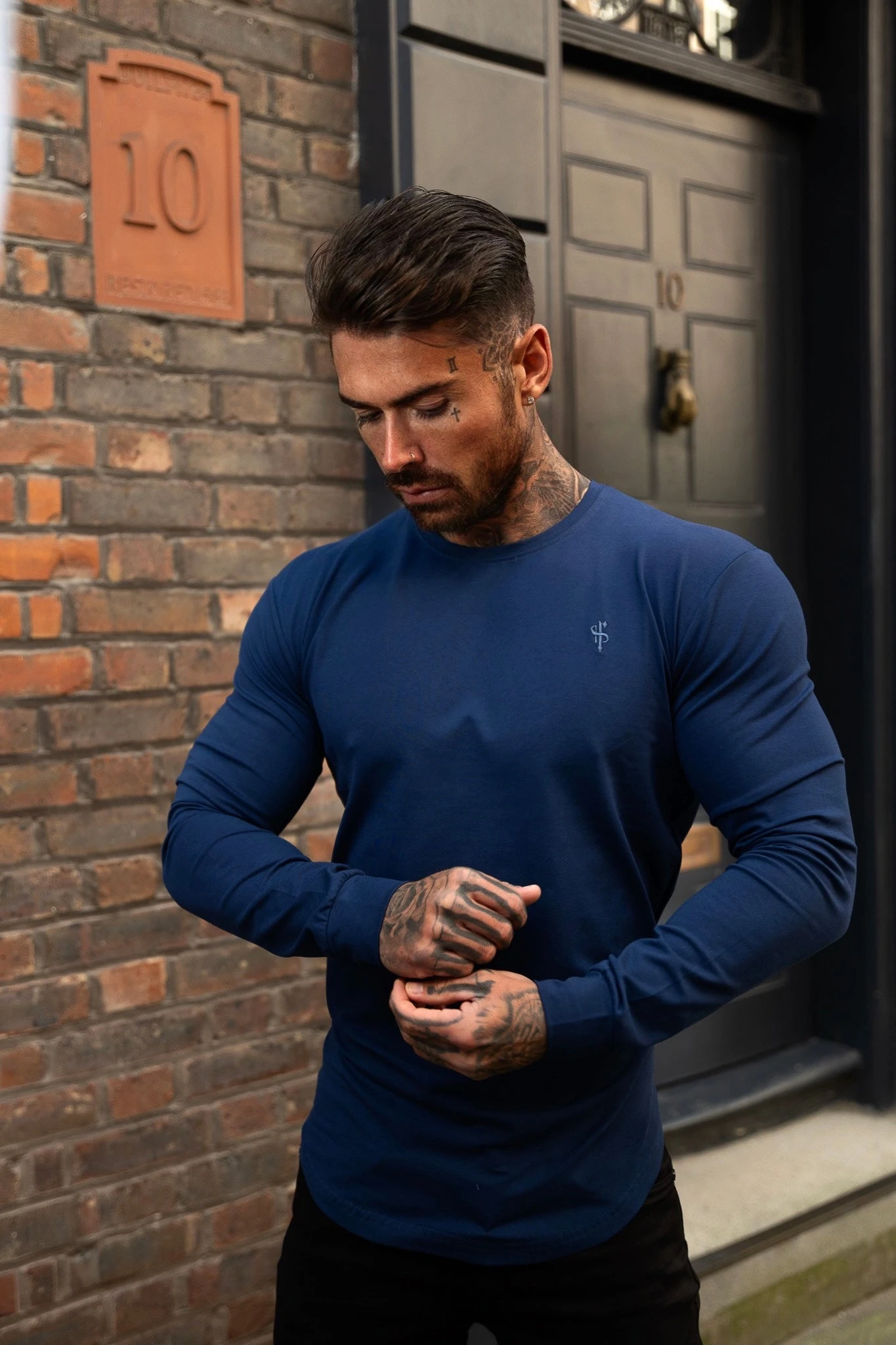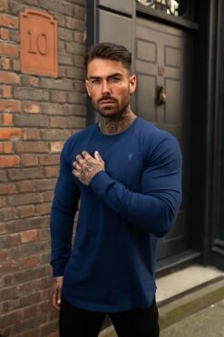 Father Sons Classic Navy Tonal Curved Hem Long Sleeve Crew T Shirt – FSH997