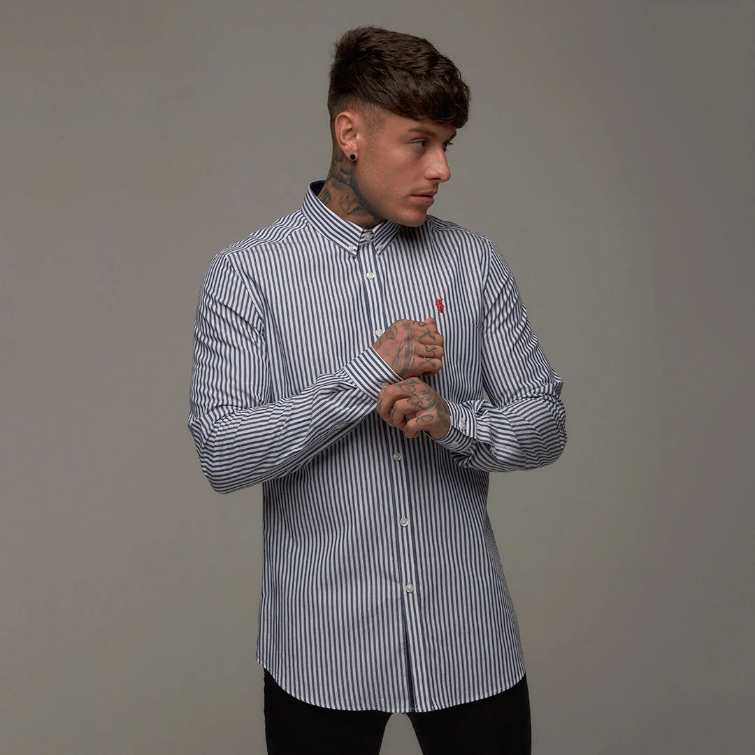 Father Sons Classic Navy White Stripe Long Sleeve (Red Emblem) – FS244
