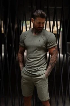 Father Sons Classic Olive / Black Ribbed Knit Super Slim Short Sleeve Crew – FSH1371C