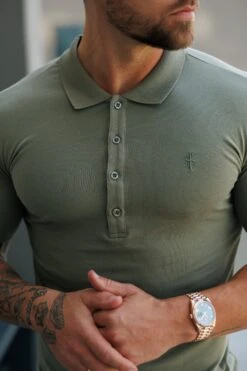 Father Sons Classic Olive Polo Shirt with Tonal Buttons and Embroidery – FSH1269