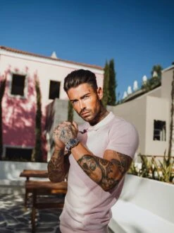 Father Sons Classic Pale Pink Merino Wool Knitted Polo Jumper Short Sleeve With FS Embroidery – FSN028