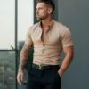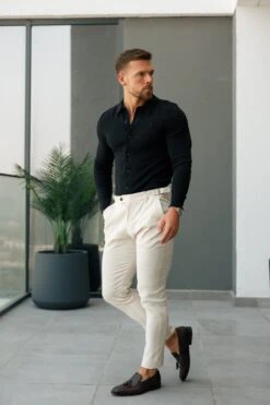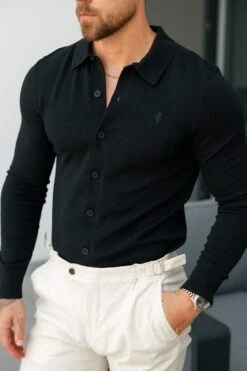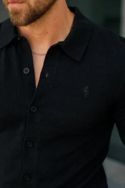 Father Sons Classic Plain Black Knitted Button Through Polo Short Sleeve – FSN166