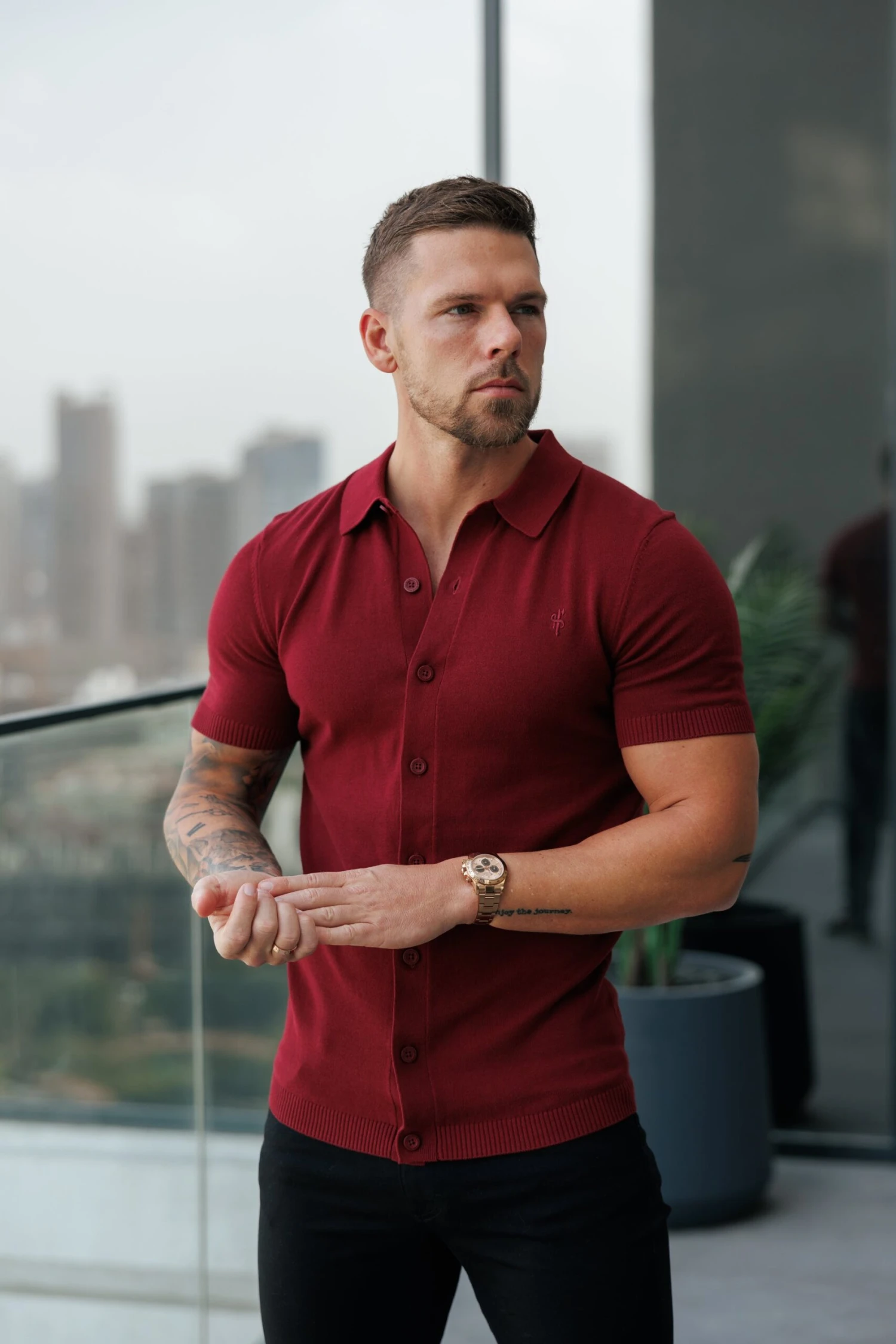 Father Sons Classic Plain Burgundy Knitted Button Through Polo Short Sleeve – FSN217