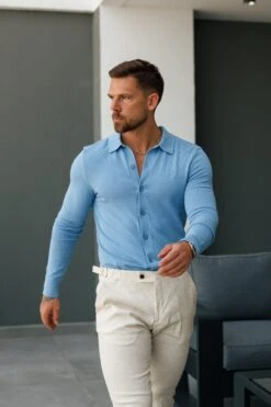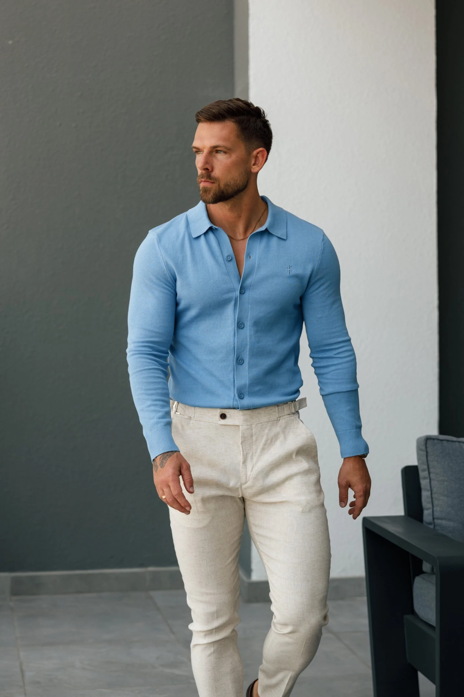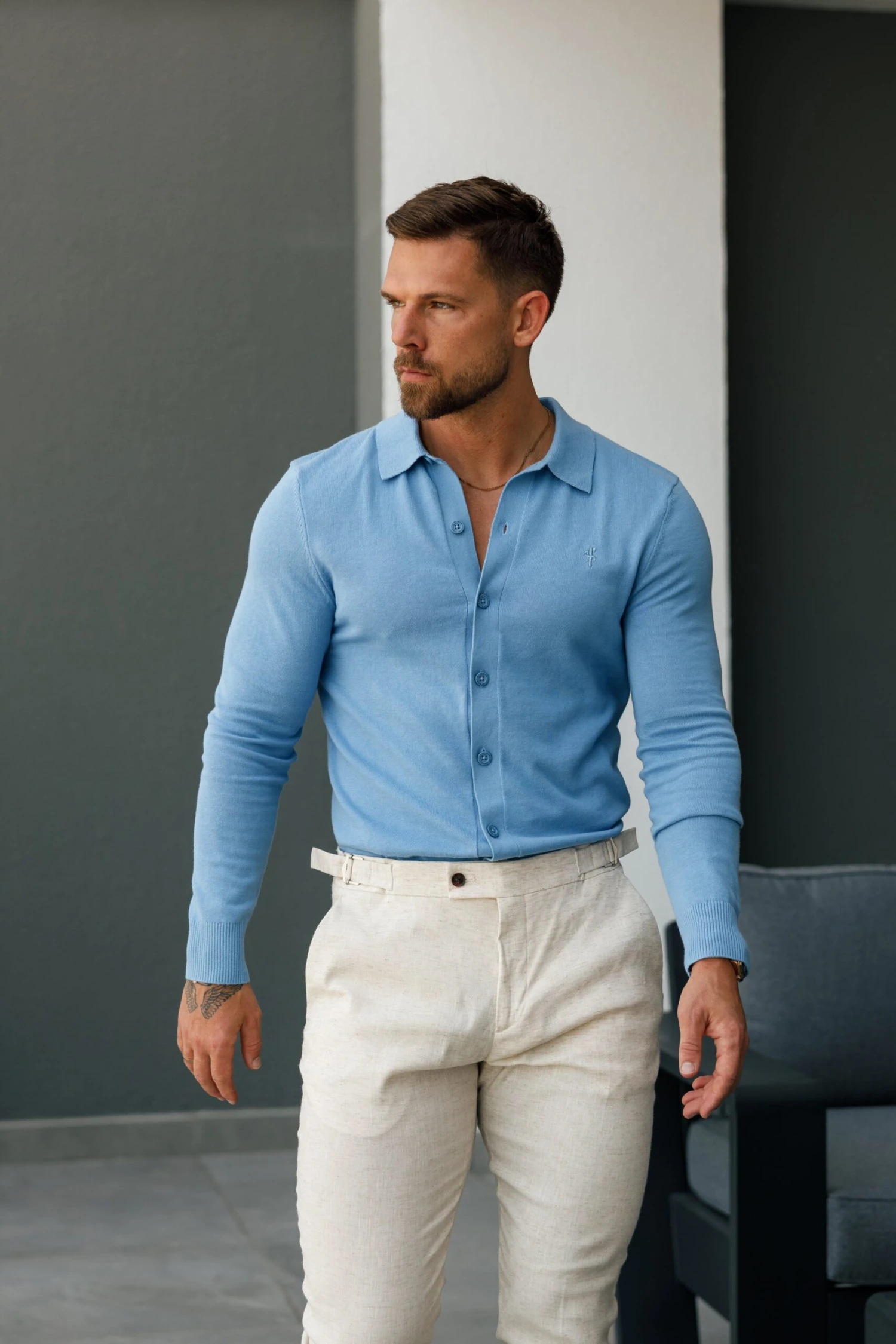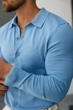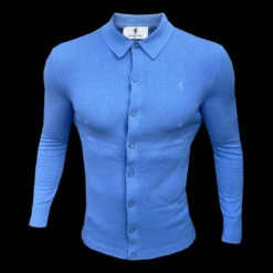 Father Sons Classic Plain Light Blue Knitted Button Through Polo Short Sleeve – FSN169