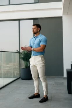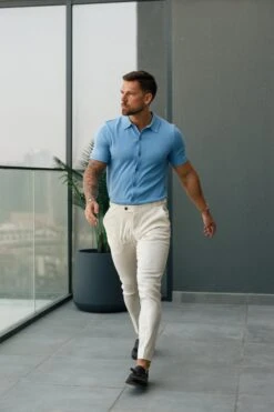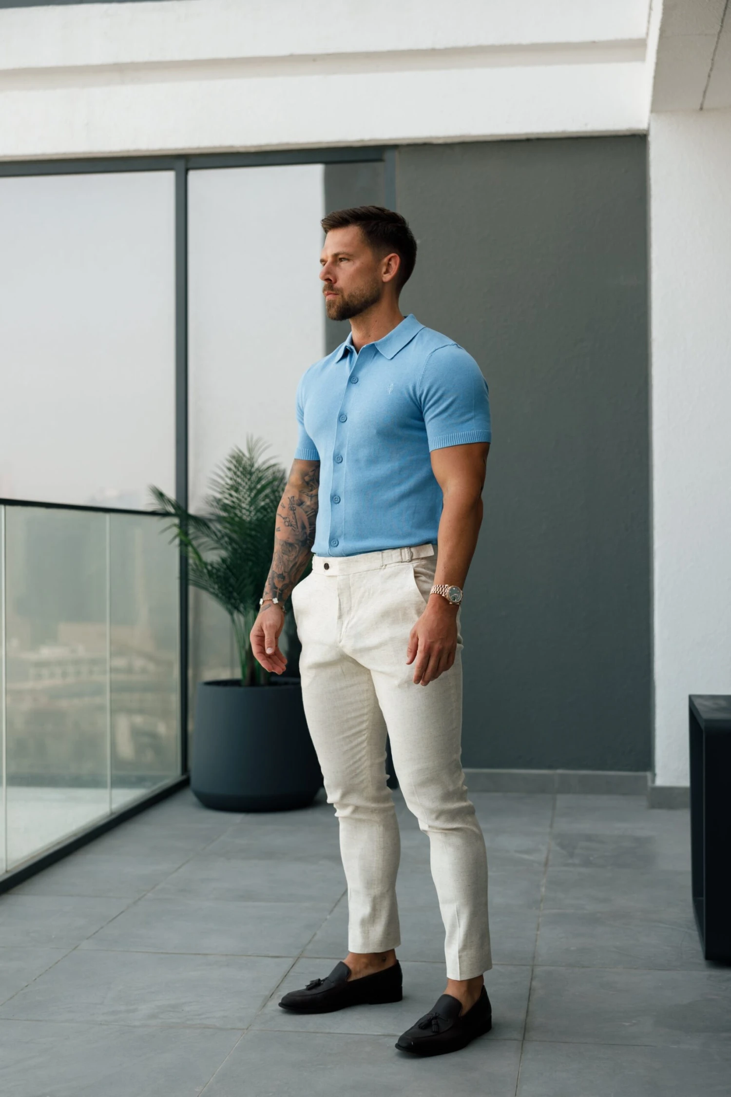 Father Sons Classic Plain Light Blue Knitted Button Through Polo Short Sleeve – FSN161