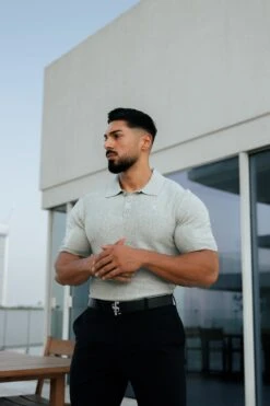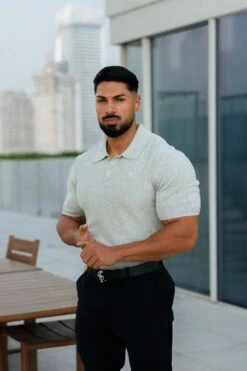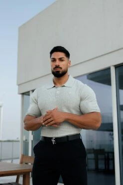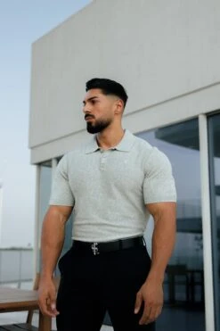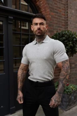 Father Sons Classic Plain Light Grey Knitted Polo Short Sleeve – FSN110