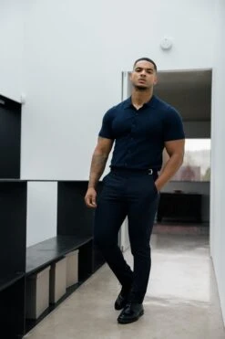 Father Sons Classic Plain Navy Knitted Button Through Polo Short Sleeve – FSN103