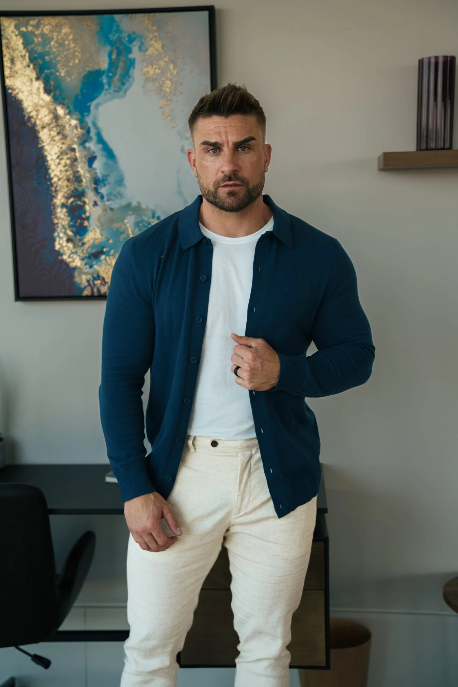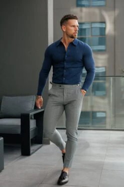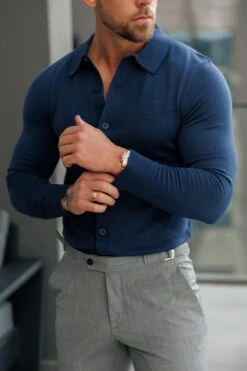 Father Sons Classic Plain New Navy Knitted Button Through Polo Long Sleeve – FSN212