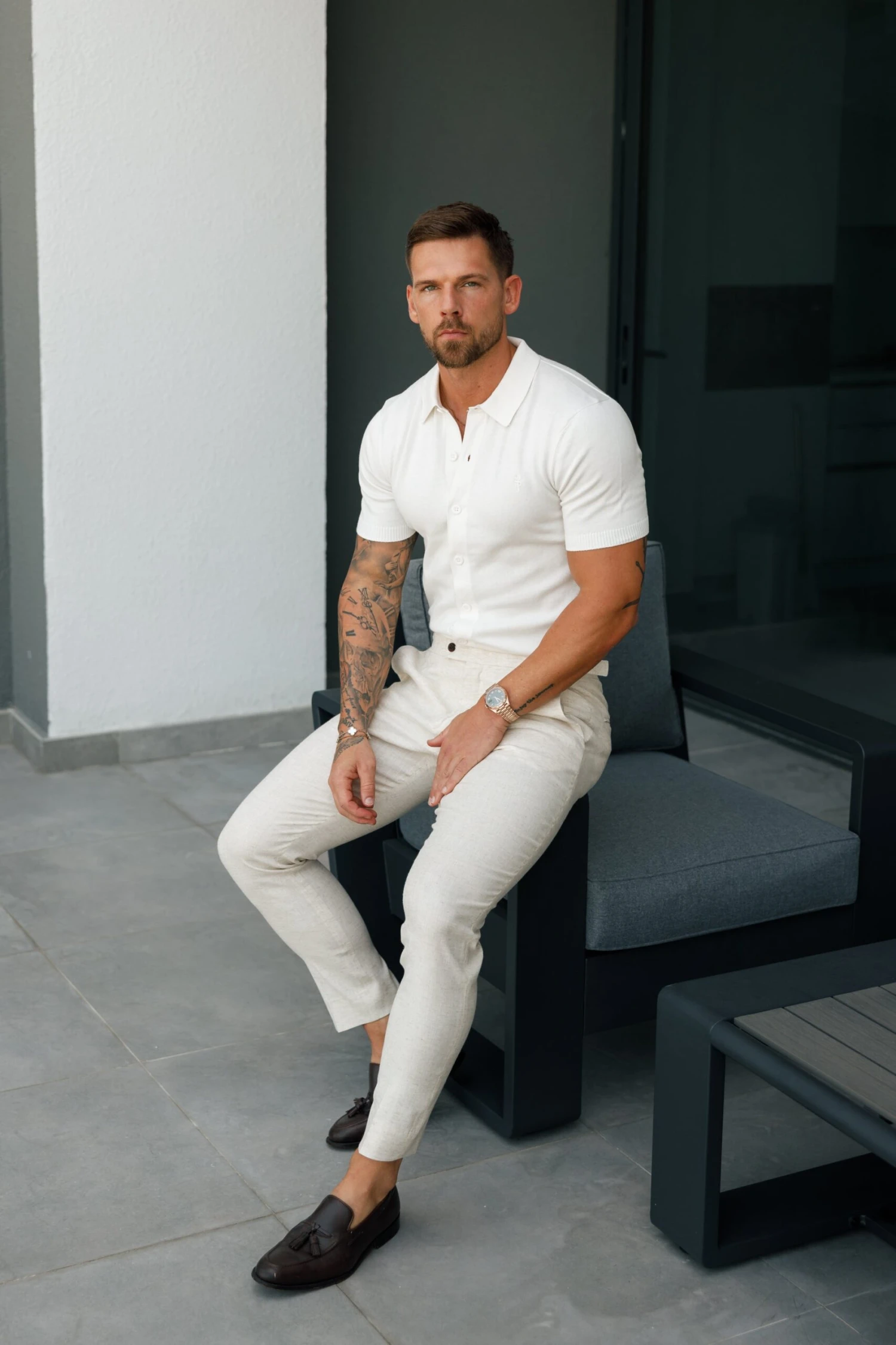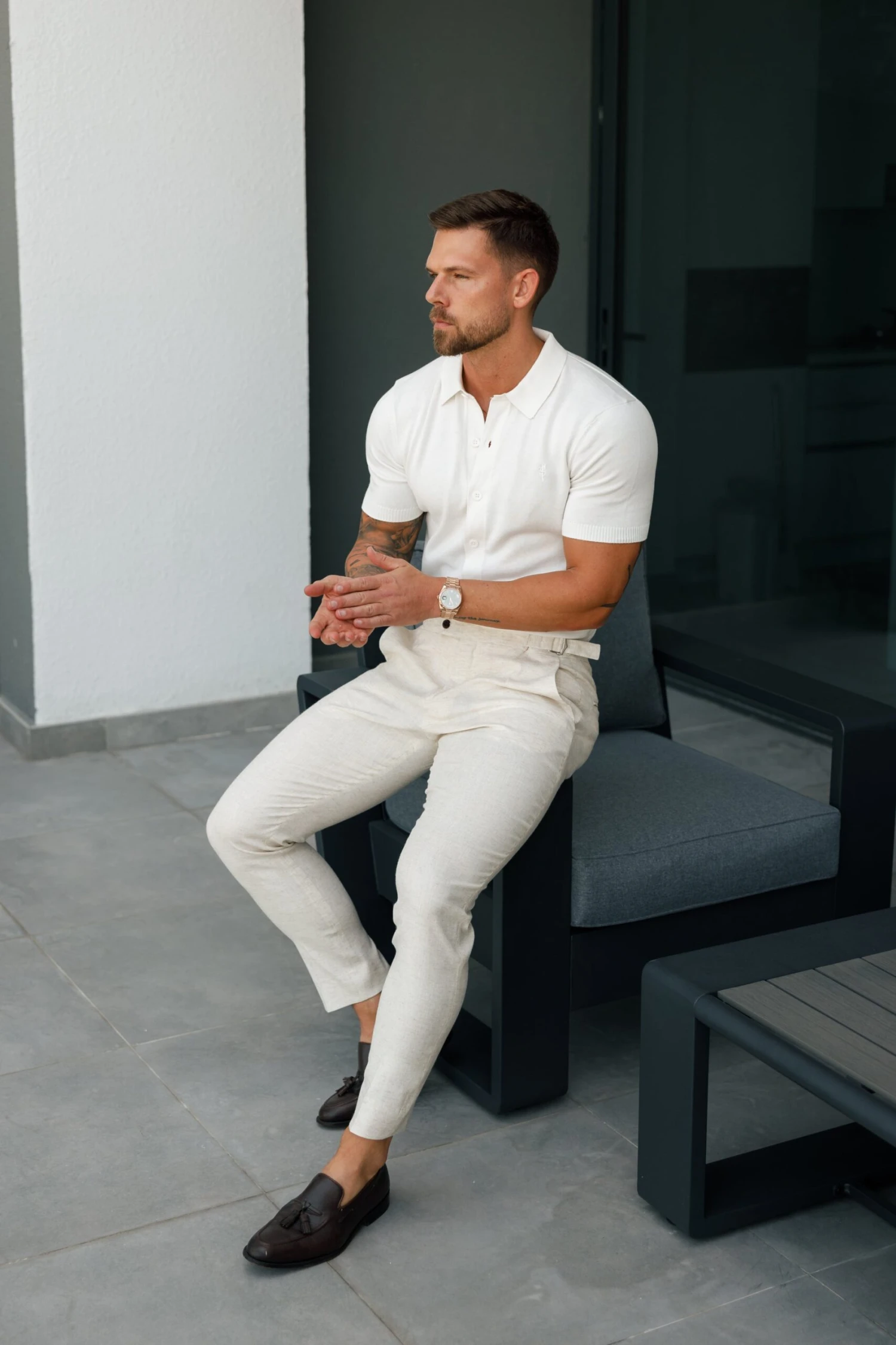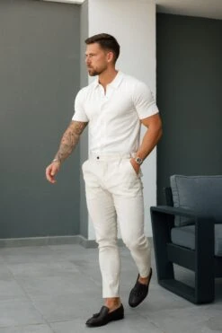 Father Sons Classic Plain Off White Knitted Button Through Polo Short Sleeve – FSN165