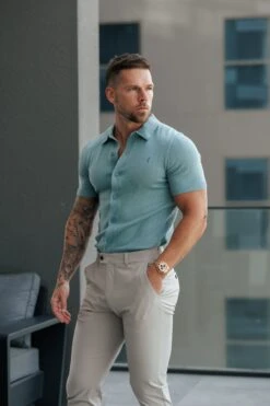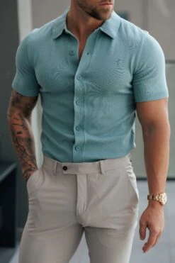 Father Sons Classic Plain Teal Knitted Button Through Polo Short Sleeve – FSN216