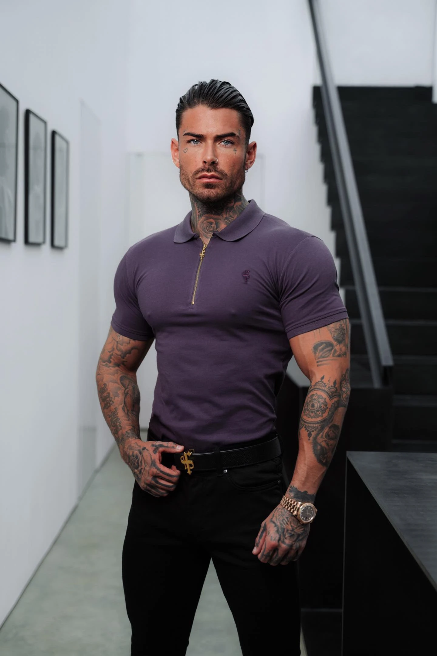 Father Sons Classic Plum and Gold Zipped Polo Shirt – FSH855