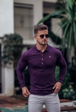 Father Sons Classic Plum Long Sleeve Polo Shirt with Metal Emblem Decal & Buttons – FSH517