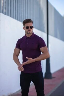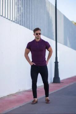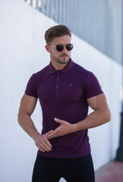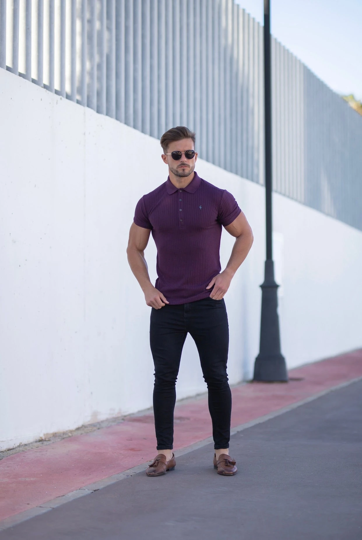 Father Sons Classic Plum Ribbed Polo Shirt Short Sleeve with Black Metal Emblem Decal & Buttons – FSH585