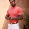 Father Sons Classic Postbox Red Ribbed Knit Super Slim Short Sleeve Crew – FSH1164