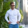 Father Sons Classic Powder Blue Merino Wool Knitted Polo Jumper Short Sleeve With FS Embroidery – FSN030