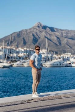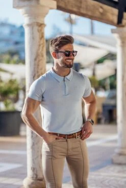 Father Sons Classic Powder Blue Merino Wool Knitted Zip Polo Short Sleeve Jumper With FS Embroidery – FSN031