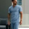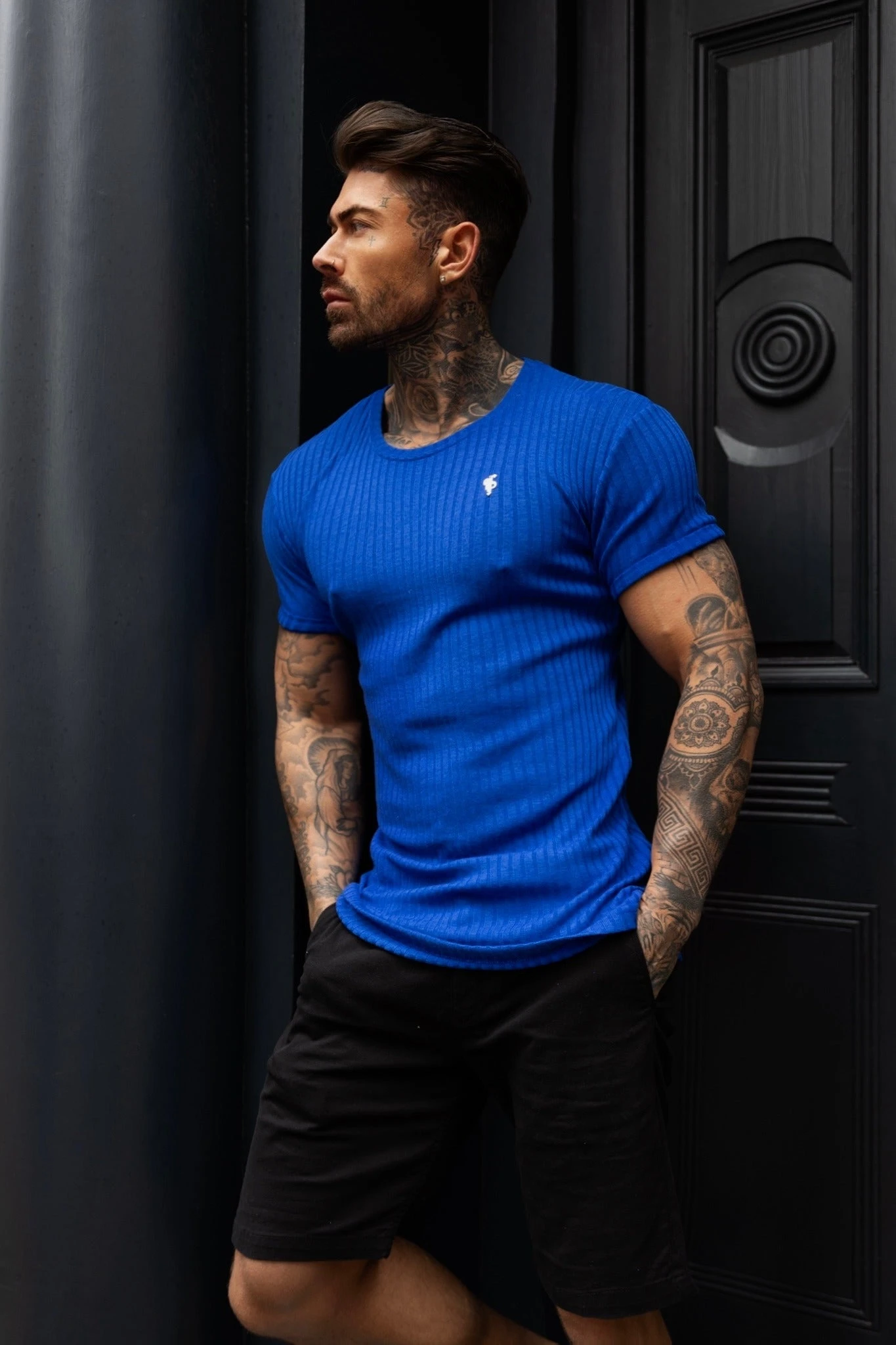 Father Sons Classic Royal Blue / Silver Ribbed Knit Super Slim Short Sleeve Crew – FSH1091
