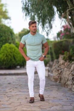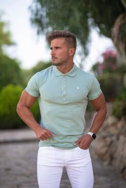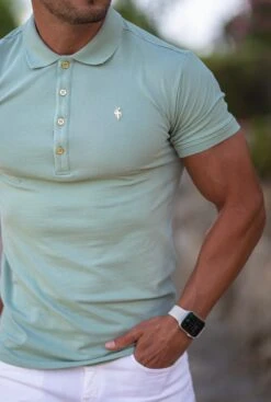 Father Sons Classic Sage Green Polo Shirt with Gold Metal Emblem Decal & Buttons – FSH502