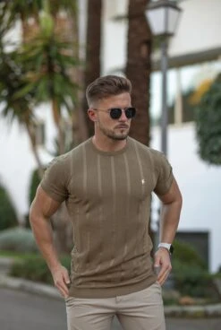 Father Sons Classic Short Sleeve Olive Green Knitted Wide Rib with Gold Emblem – FSH561