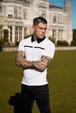 Father Sons Classic White / Black Horizontal Stripe Zipped Polo Short Sleeve – FSN043