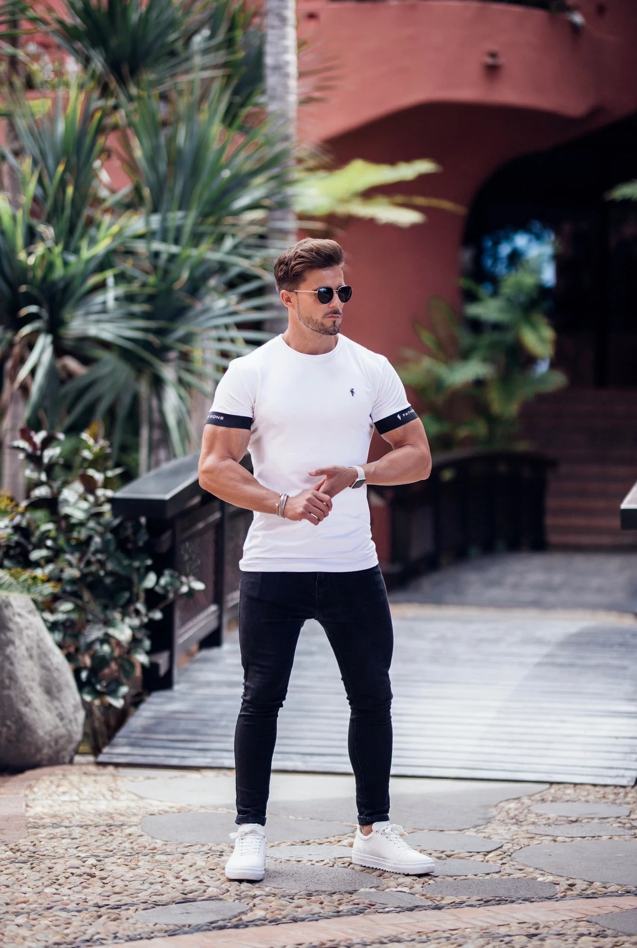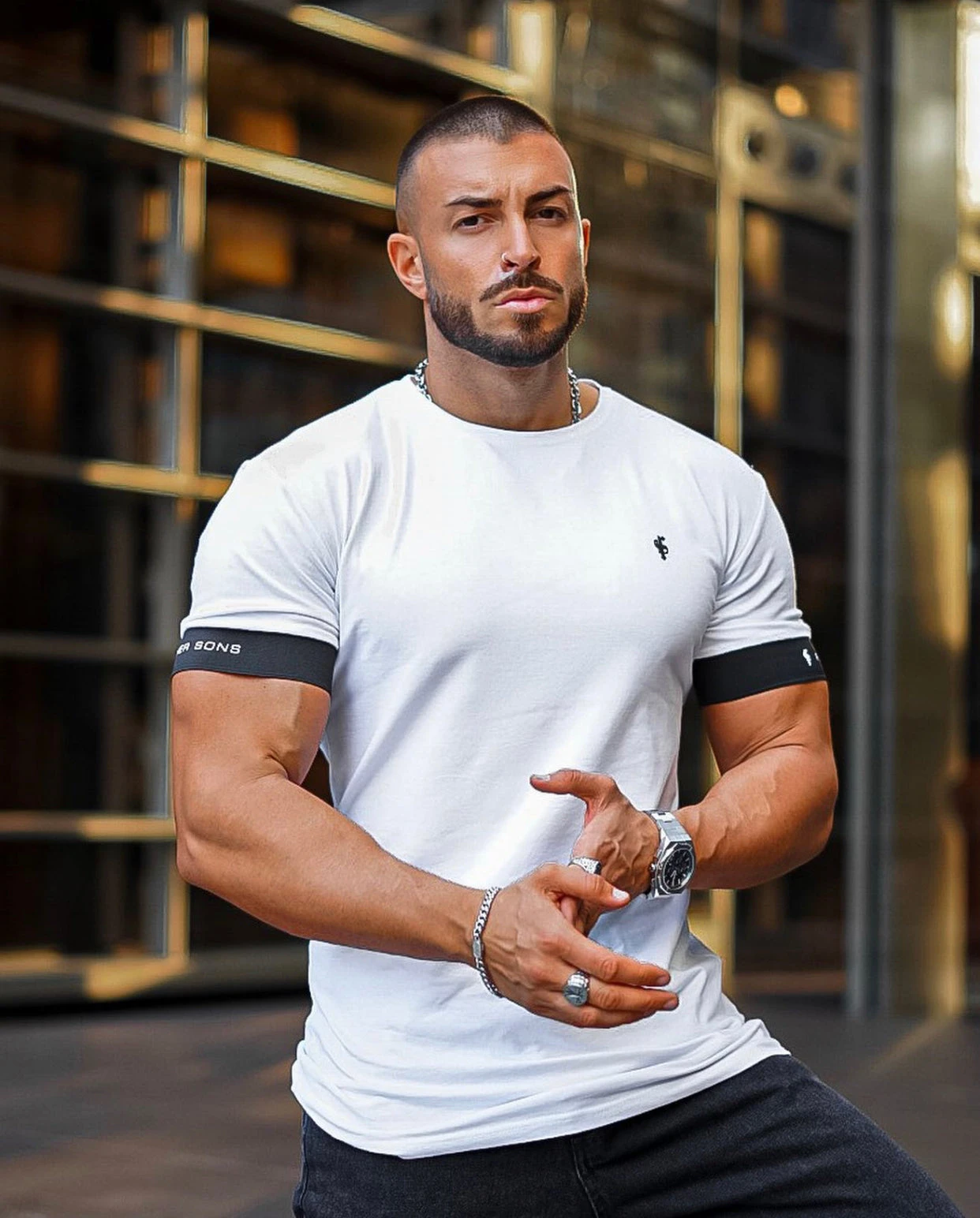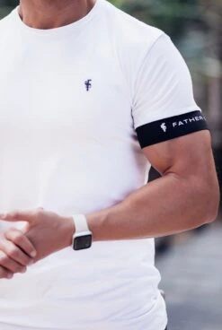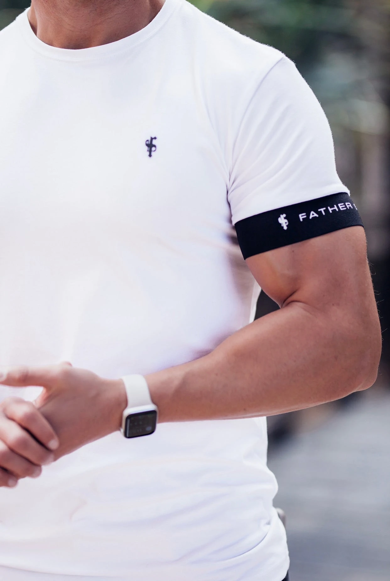 Father Sons Classic White Crew T Shirt with FS Sleeve Branding – FSH625