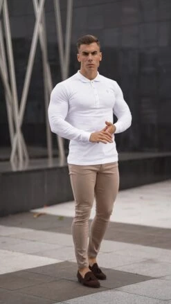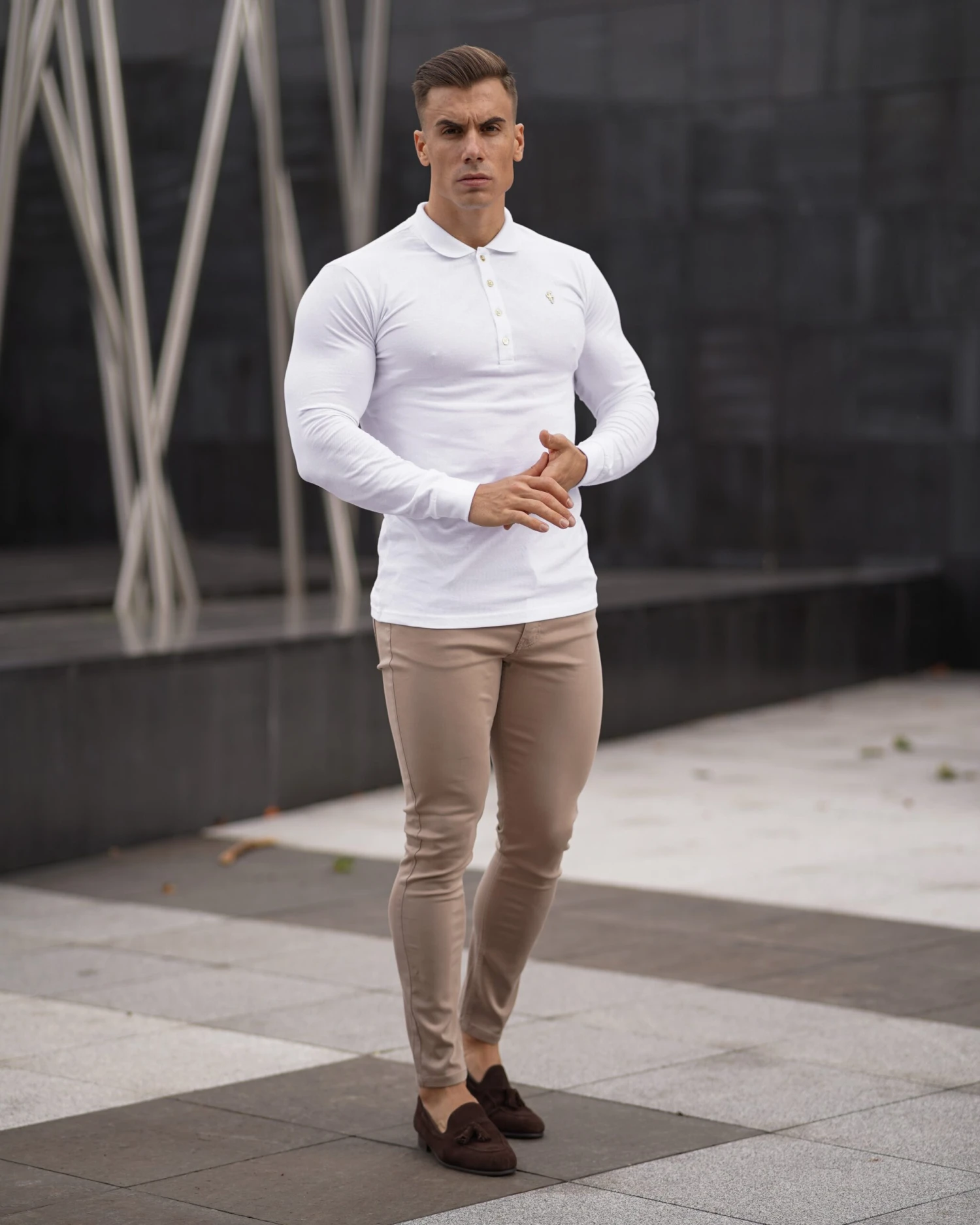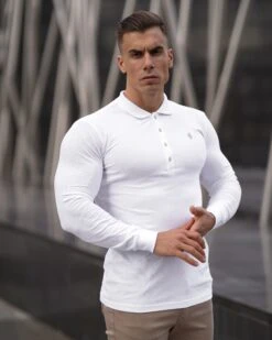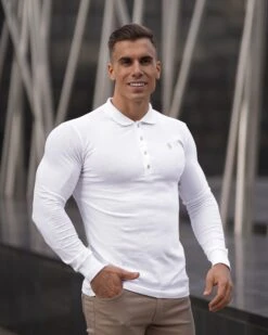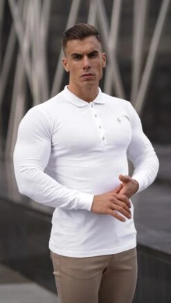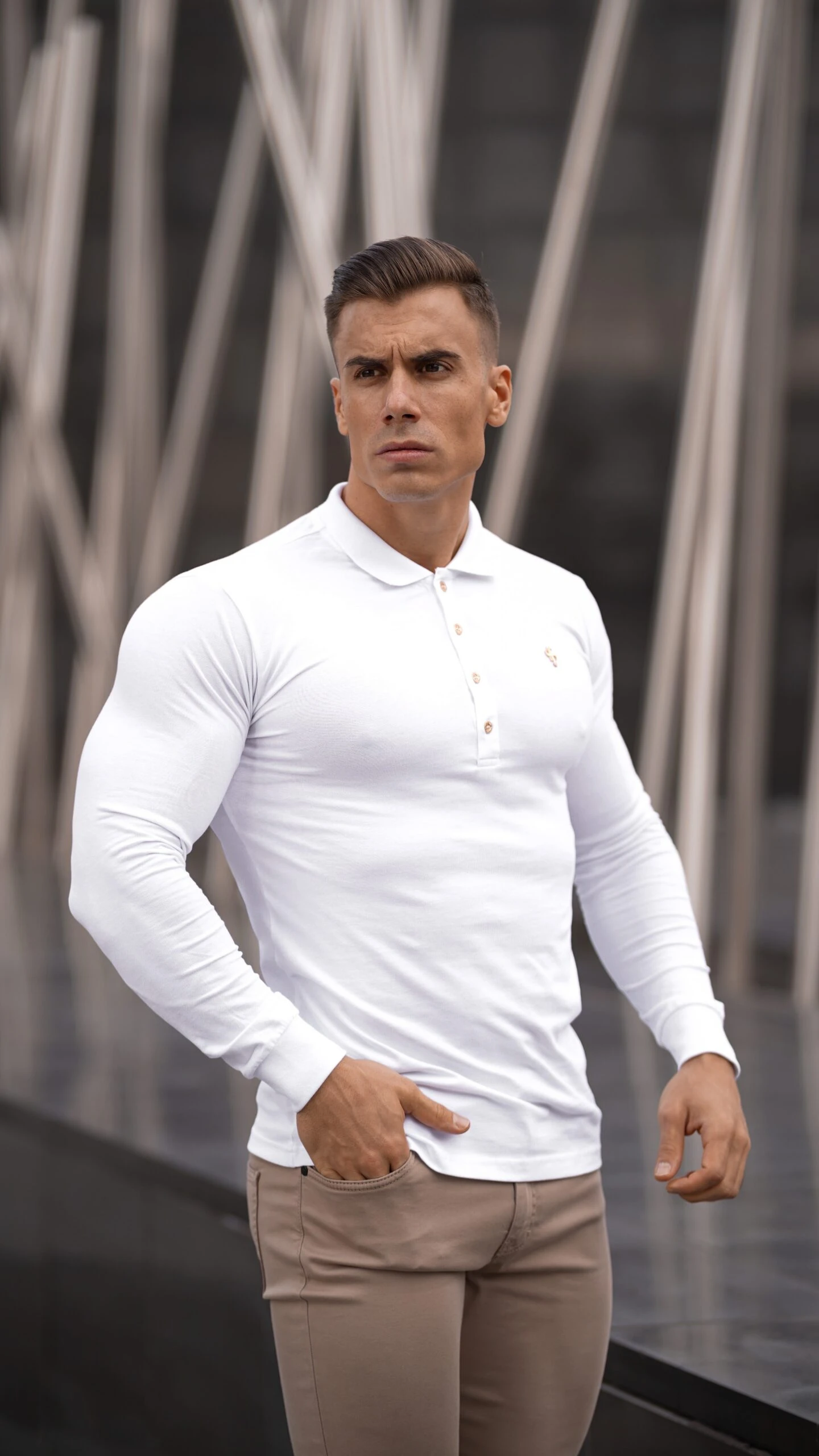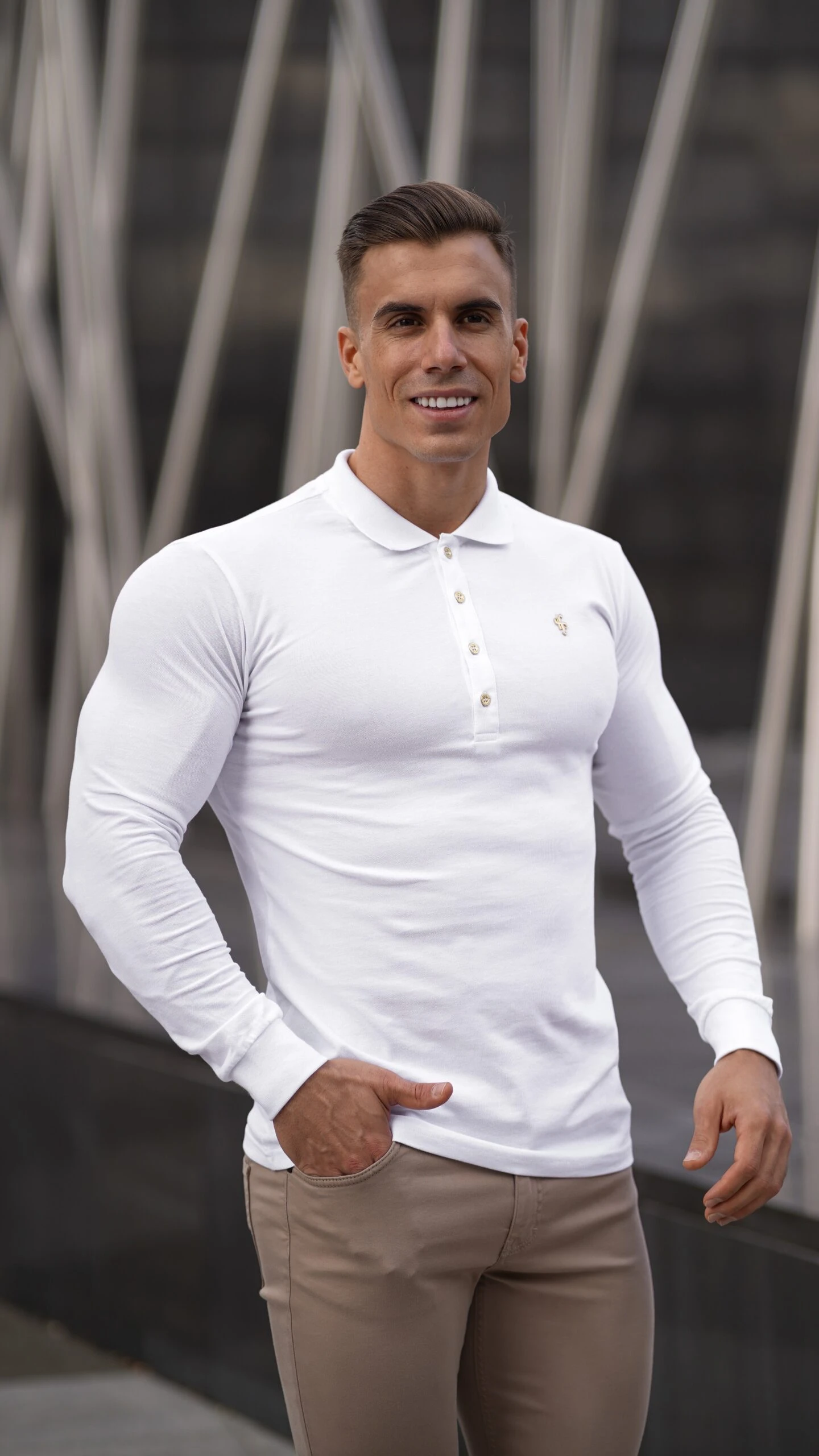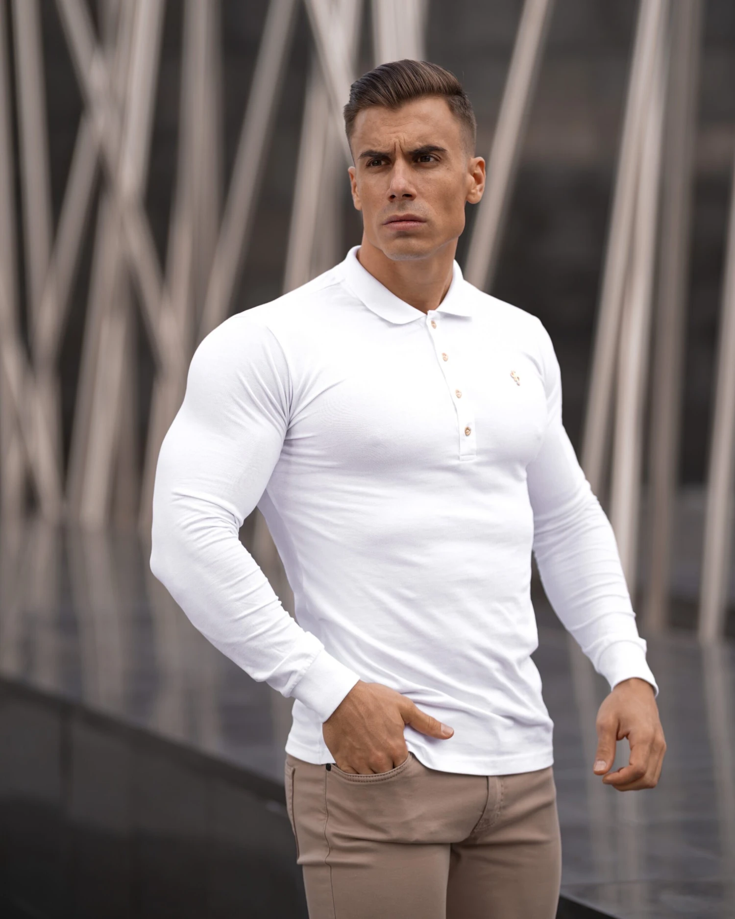 Father Sons Classic White Long Sleeve Polo Shirt with Gold Metal Emblem Decal & Buttons – FSH515